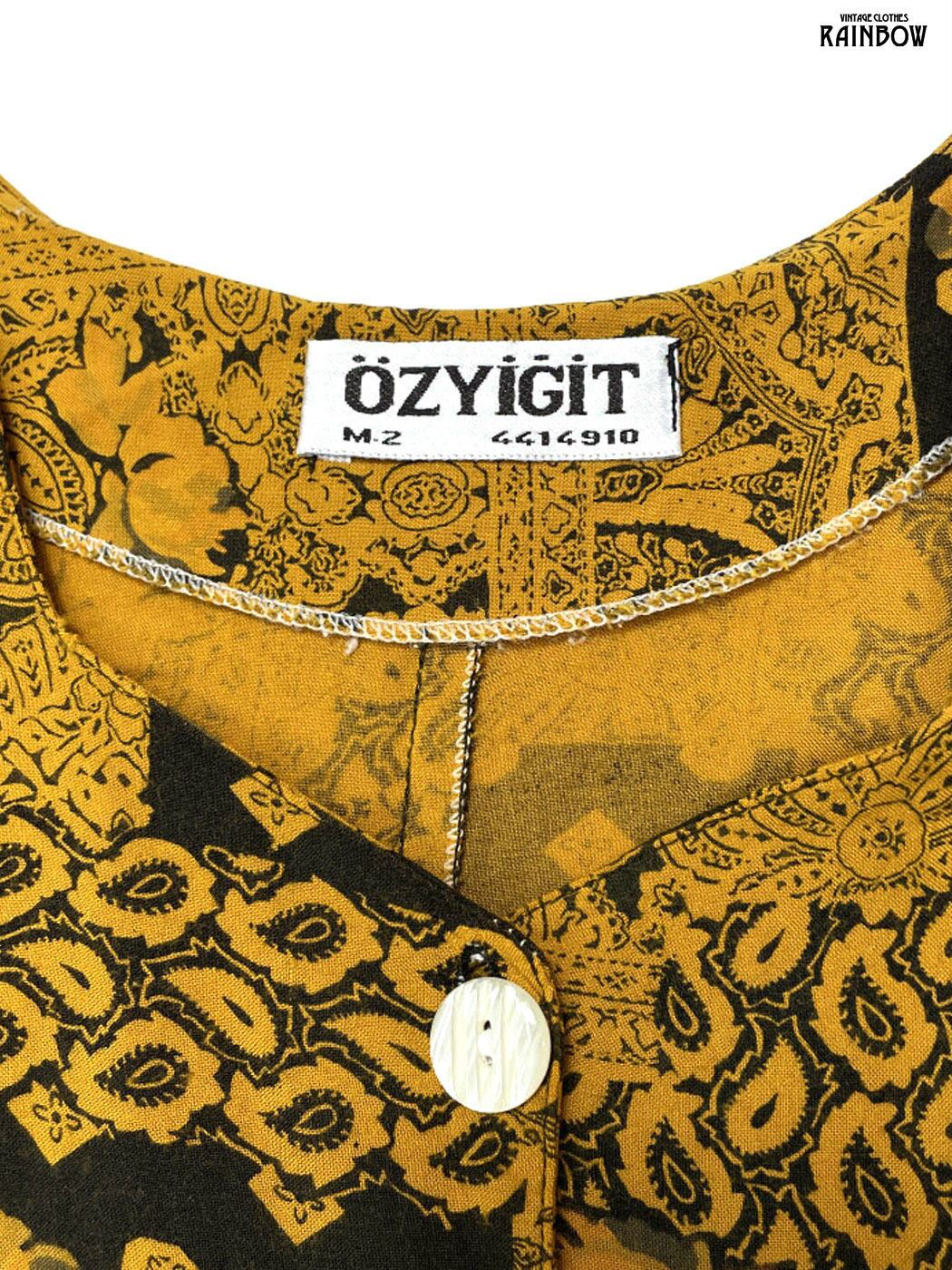 #ワンピース #ハーフスリーブ #ロング丈 #黄 #総柄 #前開き #クラシック #レーヨン #半袖総柄ワンピース