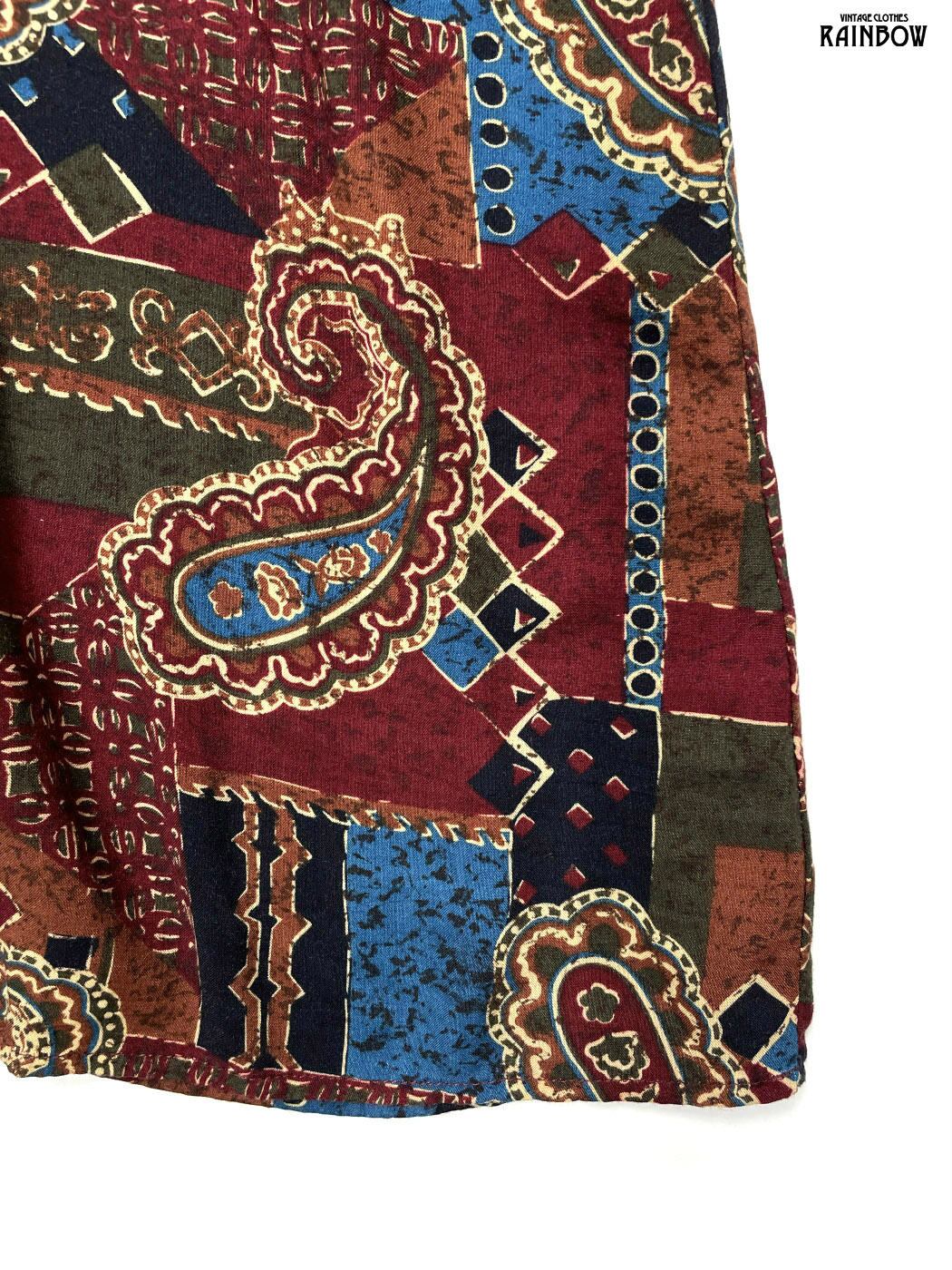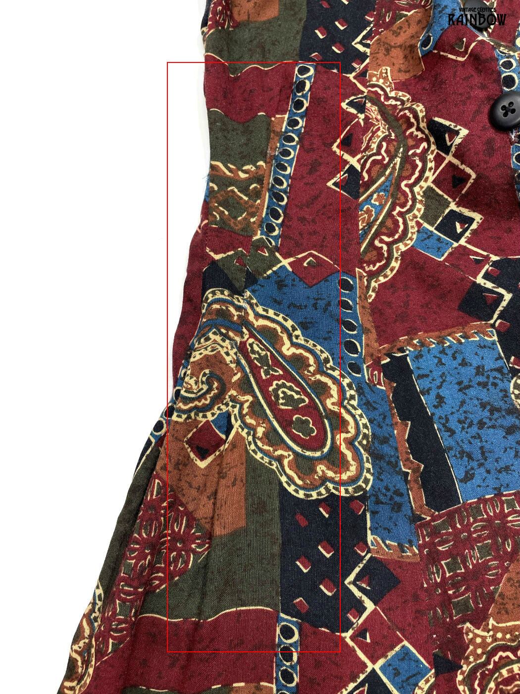 #ワンピース #ハーフスリーブ #ロング丈 #赤 #ボルドー #総柄 #前開き #クラシック #レーヨン #半袖総柄ワンピース