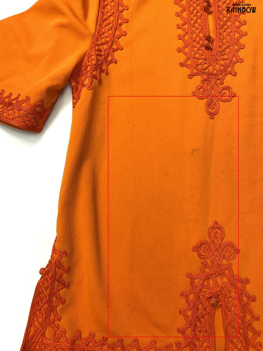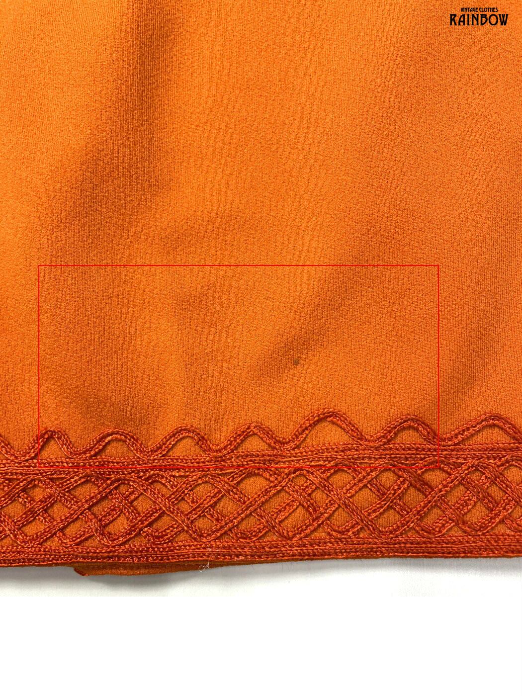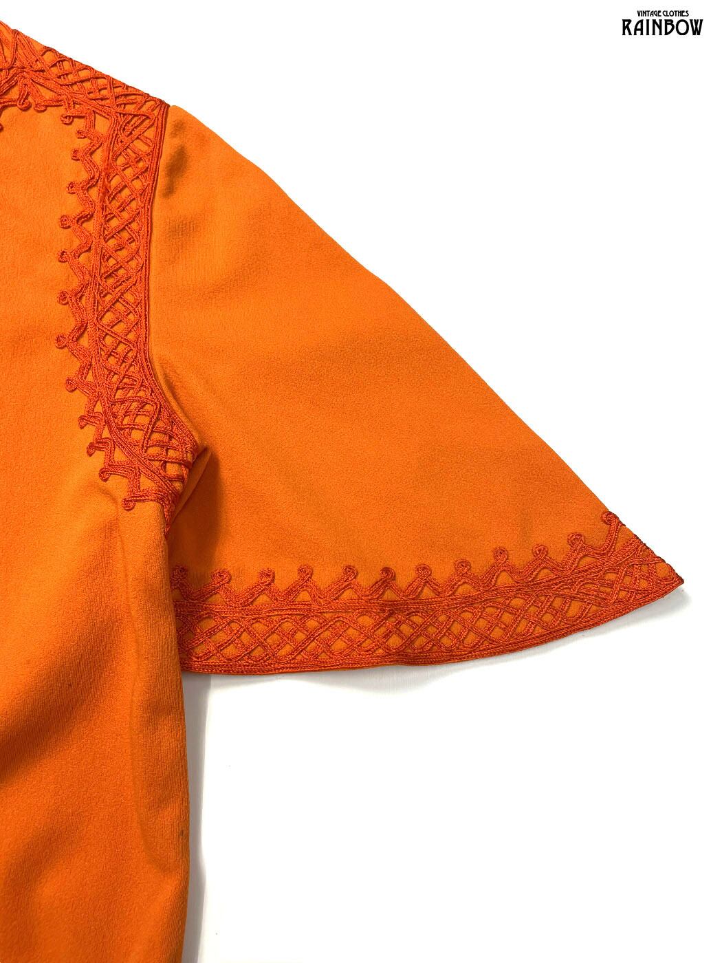 古着 チャイナボタン 刺繍 無地 半袖 ブラウス オレンジ (ttu2506008)