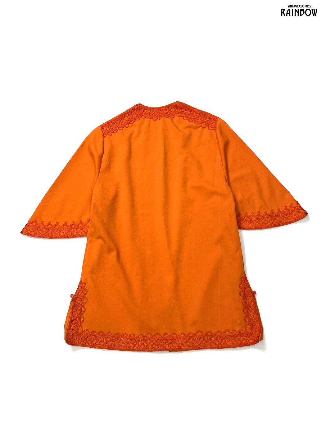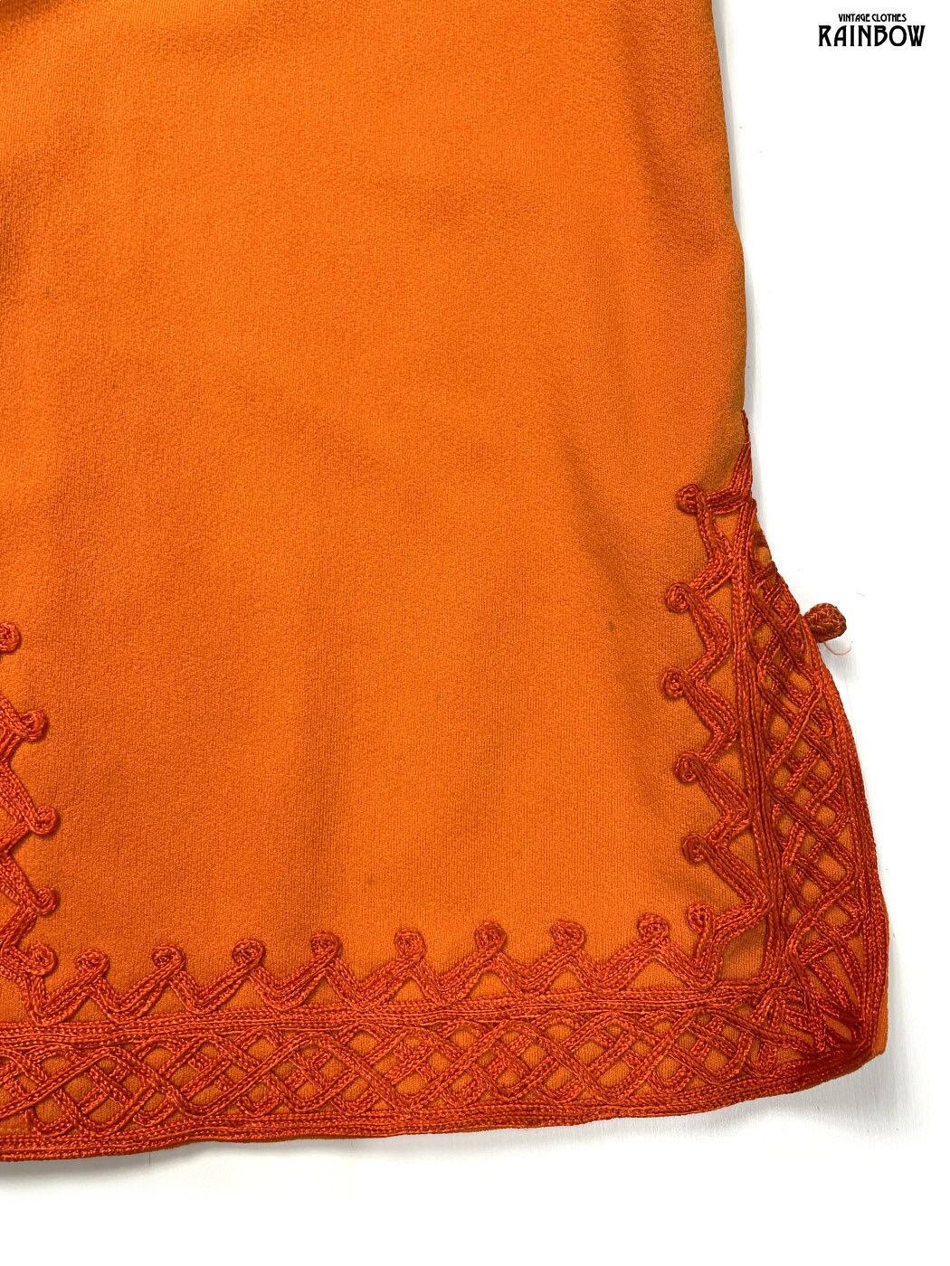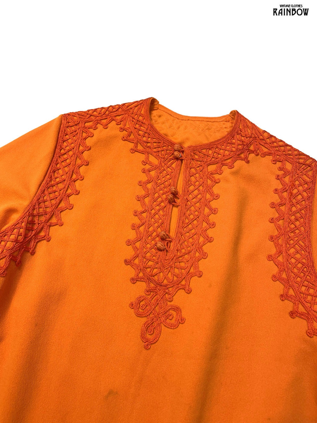 古着 チャイナボタン 刺繍 無地 半袖 ブラウス オレンジ (ttu2506008)