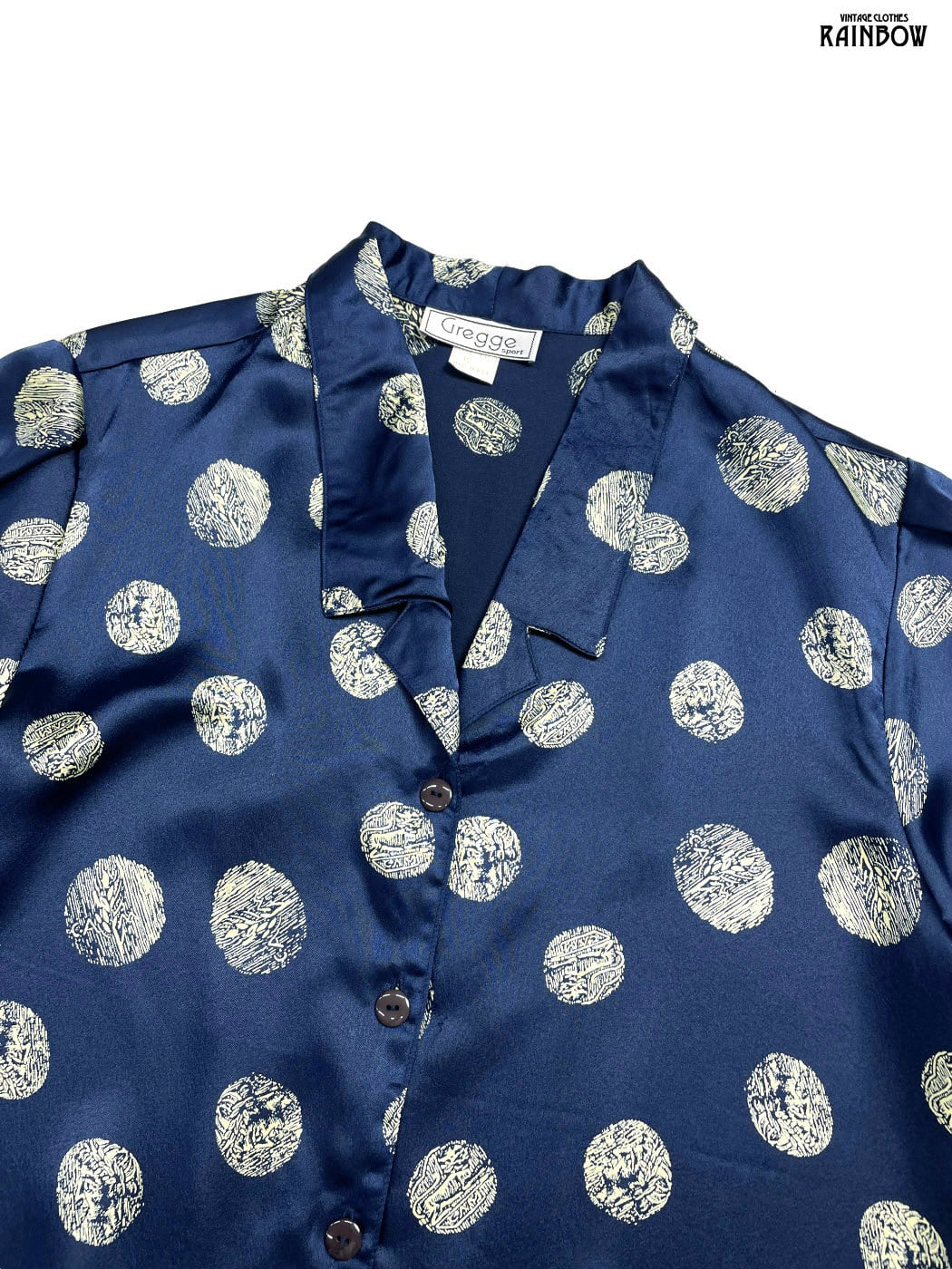 #ブラウス #シャツ #ハーフスリーブ #紺 #総柄 #クラシック #サテン #柄シャツ #アメリカ製