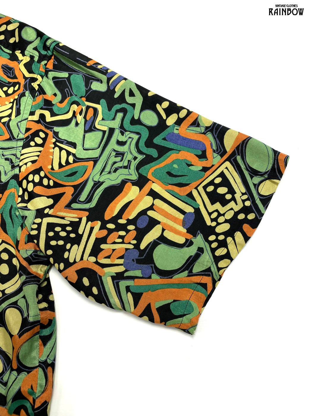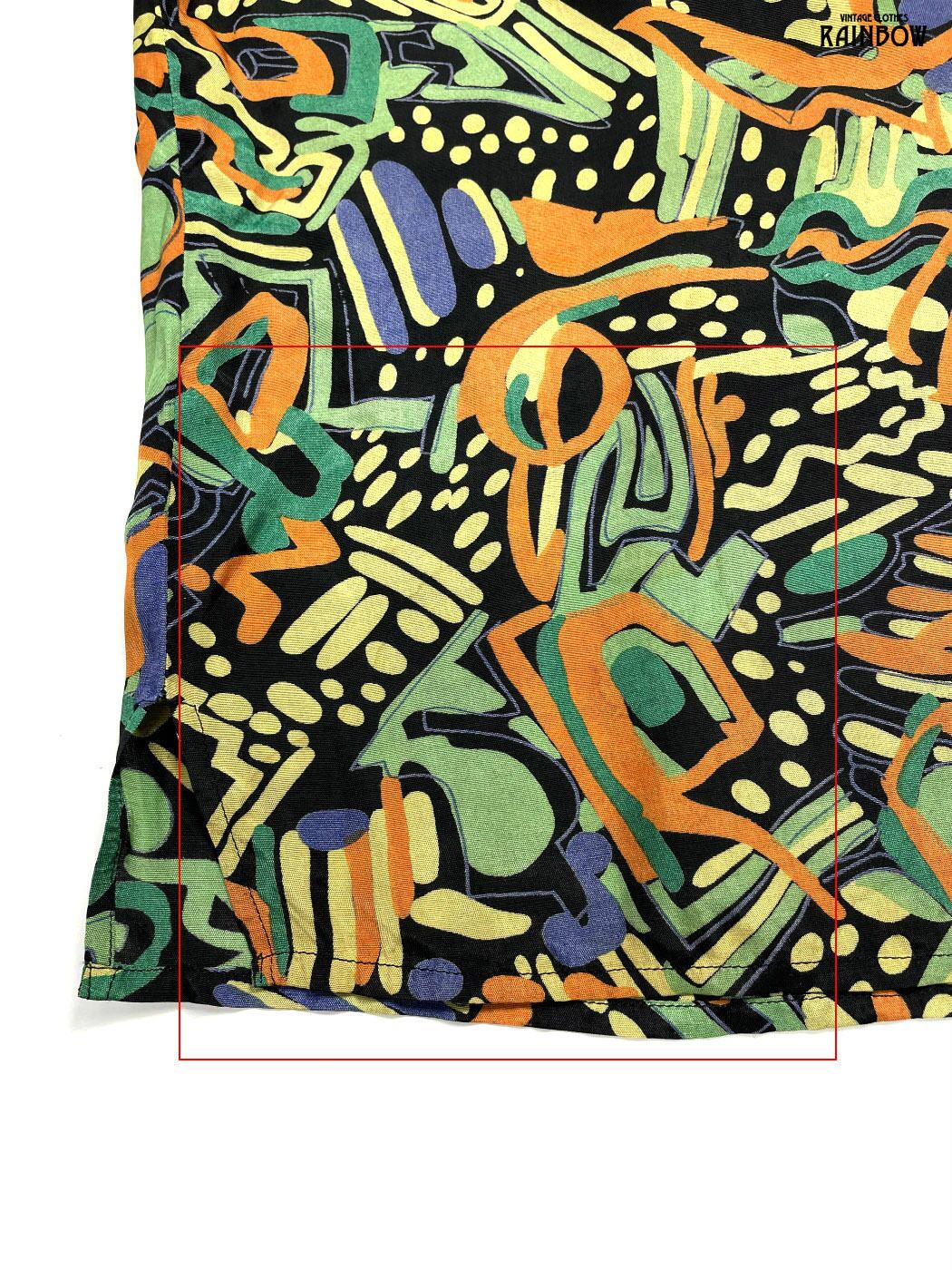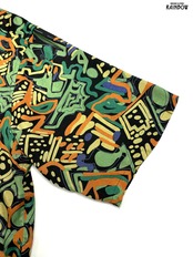 #ブラウス #シャツ #ハーフスリーブ #黒 #緑 #総柄 #前開き #ヴィンテージ #レーヨン #柄シャツ
