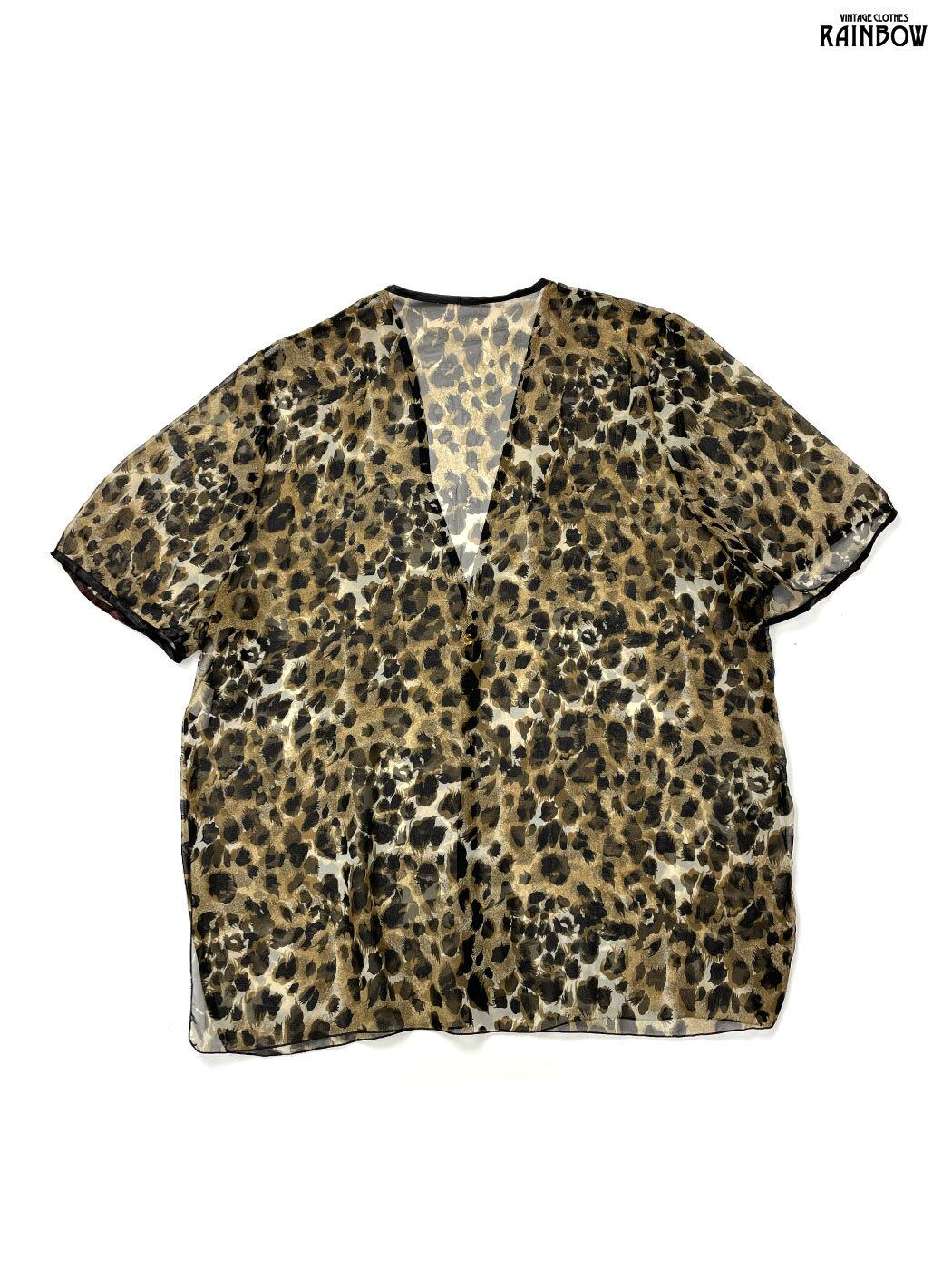 #アウター #羽織り #ハーフスリーブ #茶 #ベージュ #総柄 #レオパード柄 #ビジュー #前開き #ヴィンテージ #半袖羽織り