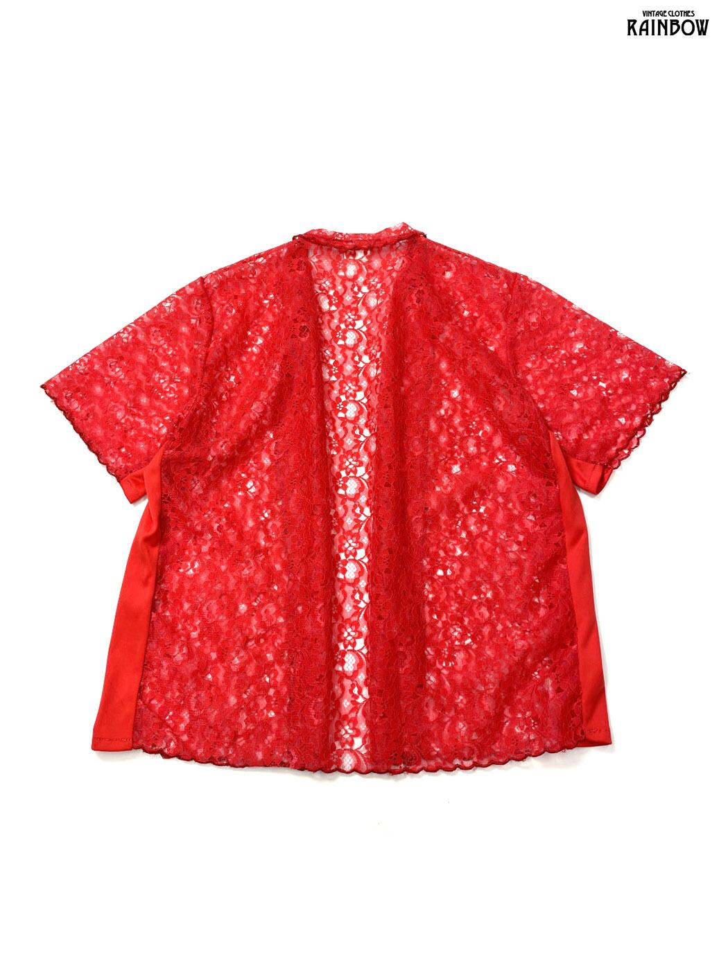 #アウター #羽織り #ハーフスリーブ #赤 #花柄 #レース #前開き #ガーリー #総レース #半袖羽織り
