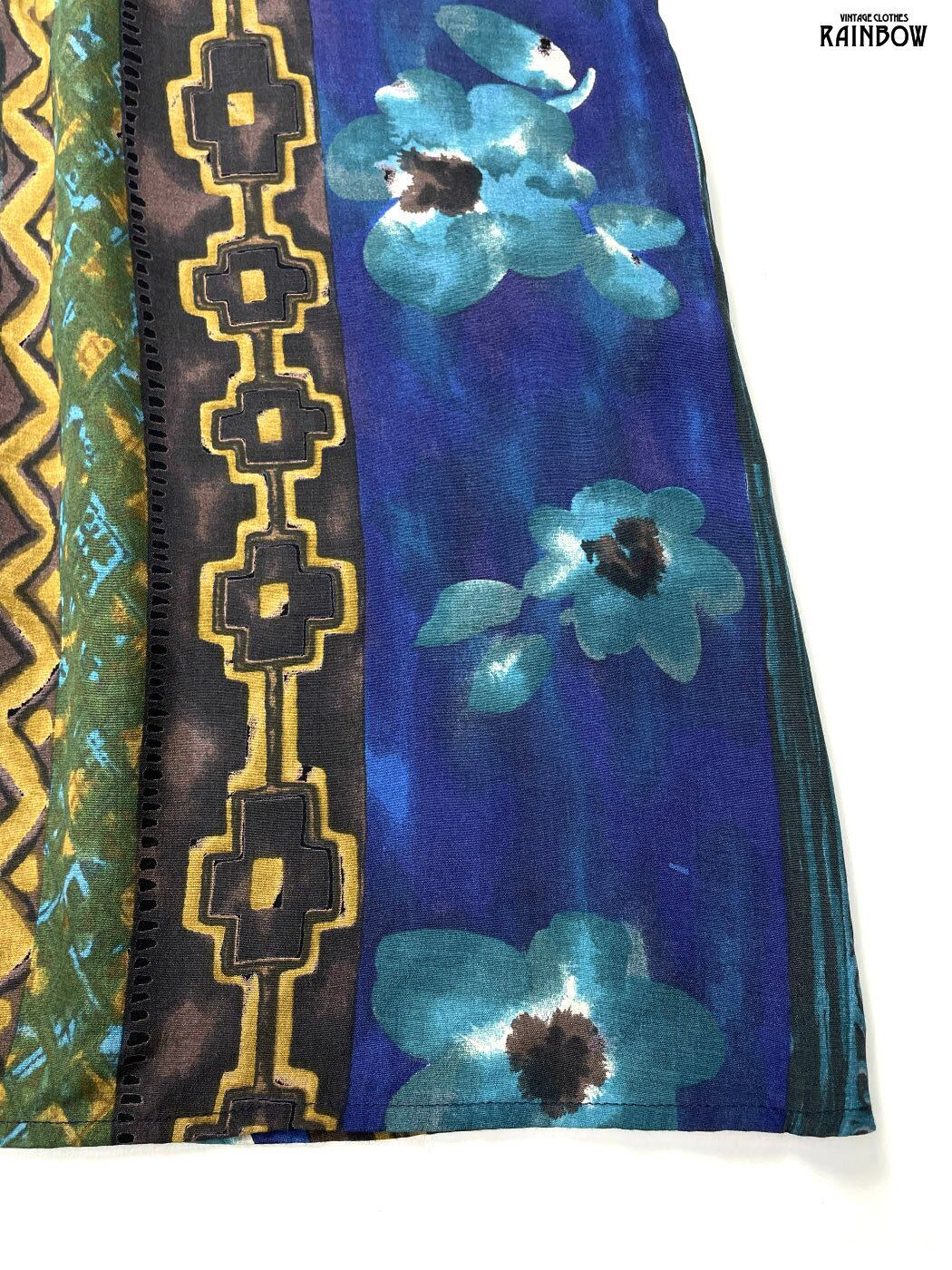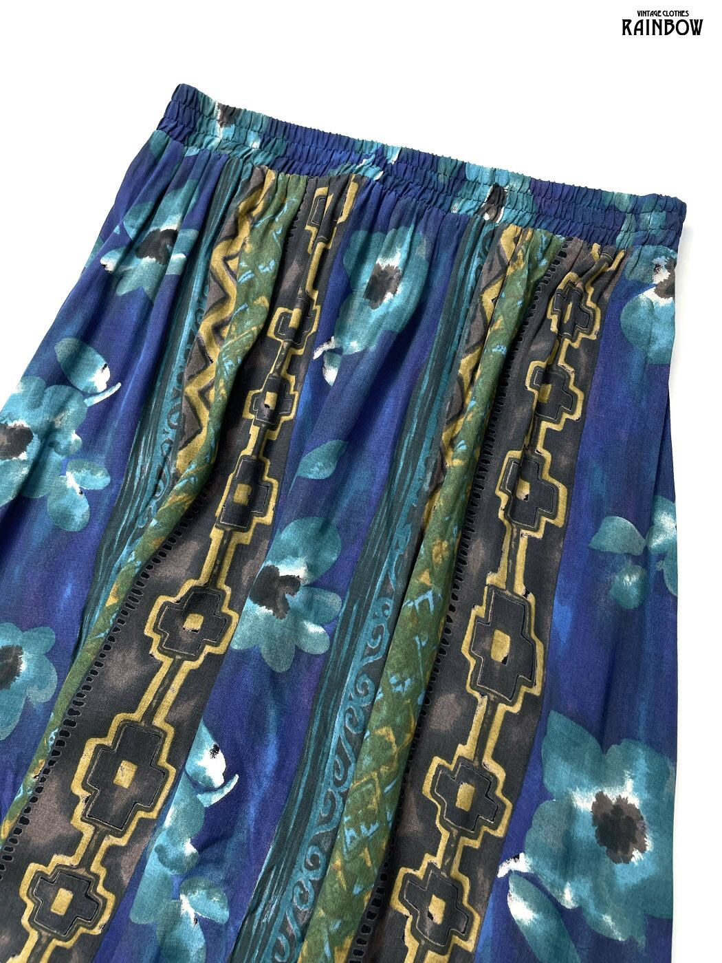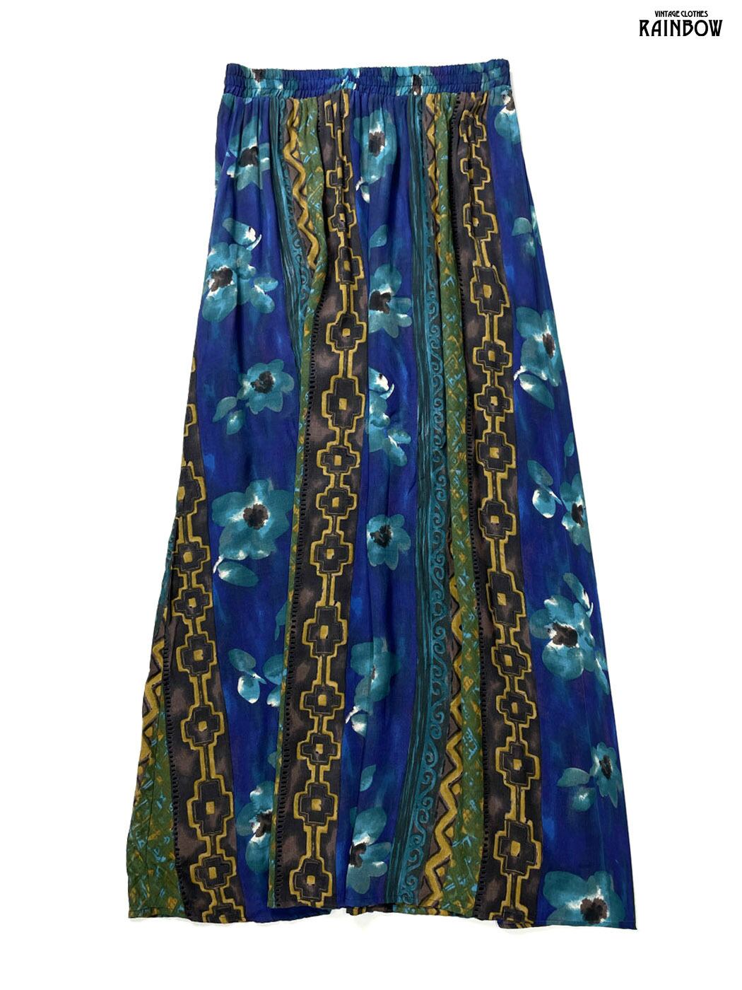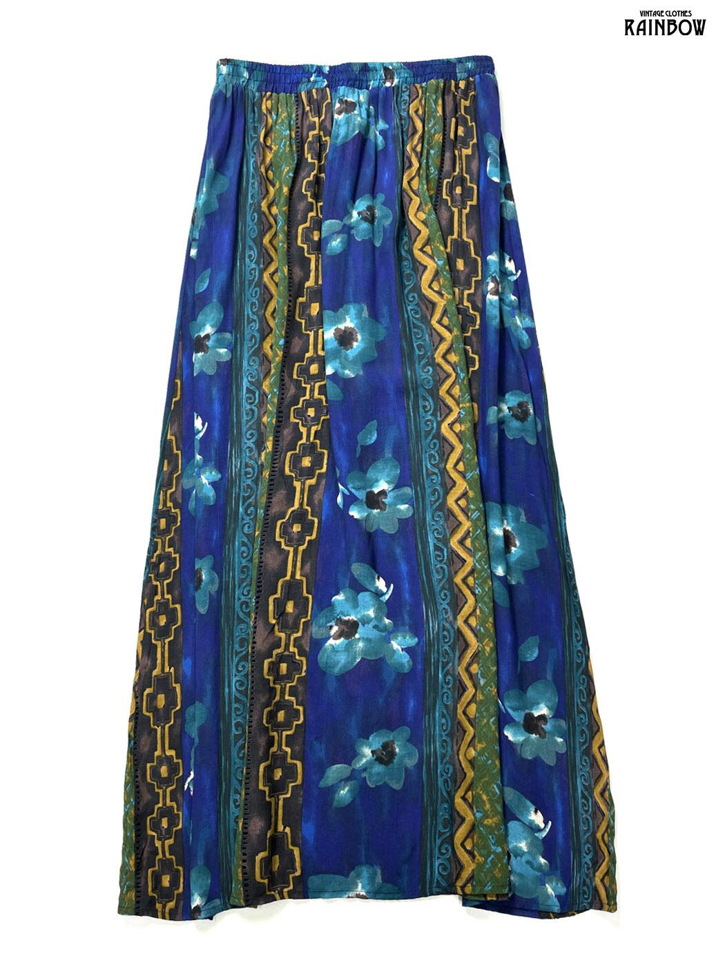 #スカート #ロング丈 #ゴムウエスト #紺 #花柄 #アメリカ製 #クラシック #レーヨン #花柄スカート