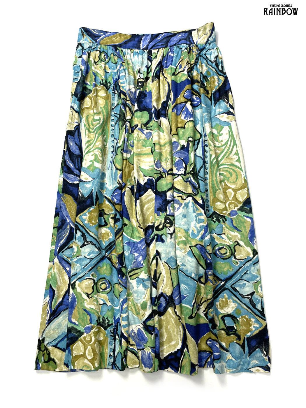 #スカート #ロング丈 #青 #水色 #総柄 #アメリカ製 #レーヨン #柄ライトスカート