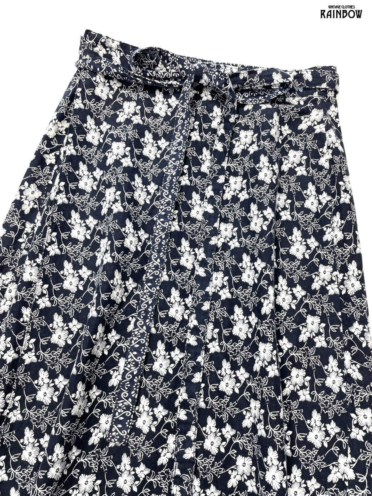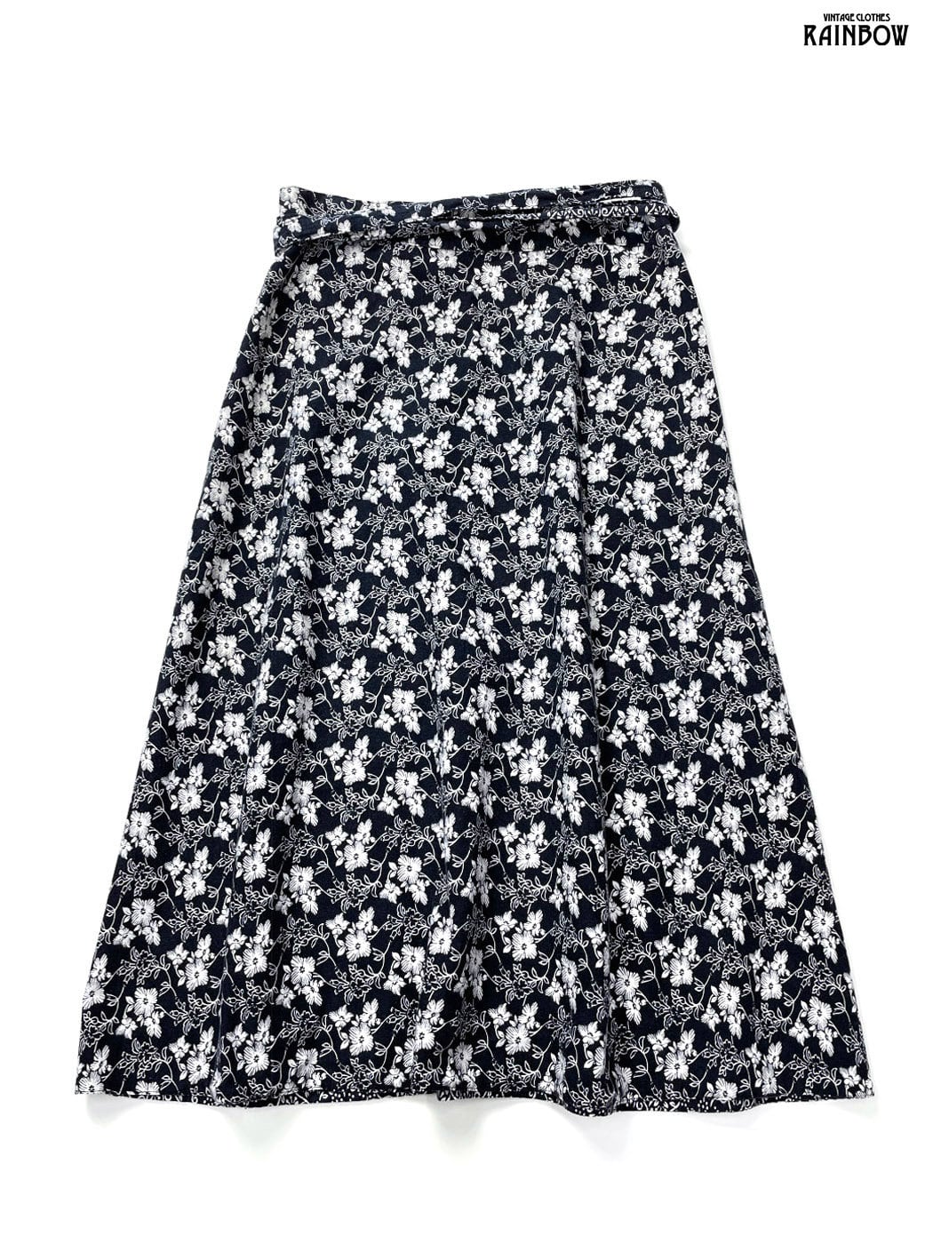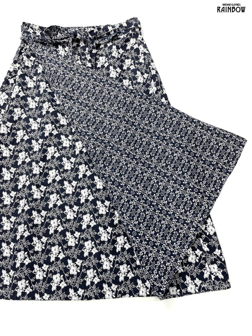 #スカート #膝丈 #フレア #紺 #花柄 #巻きデザイン #クラシック #コットン #花柄スカート