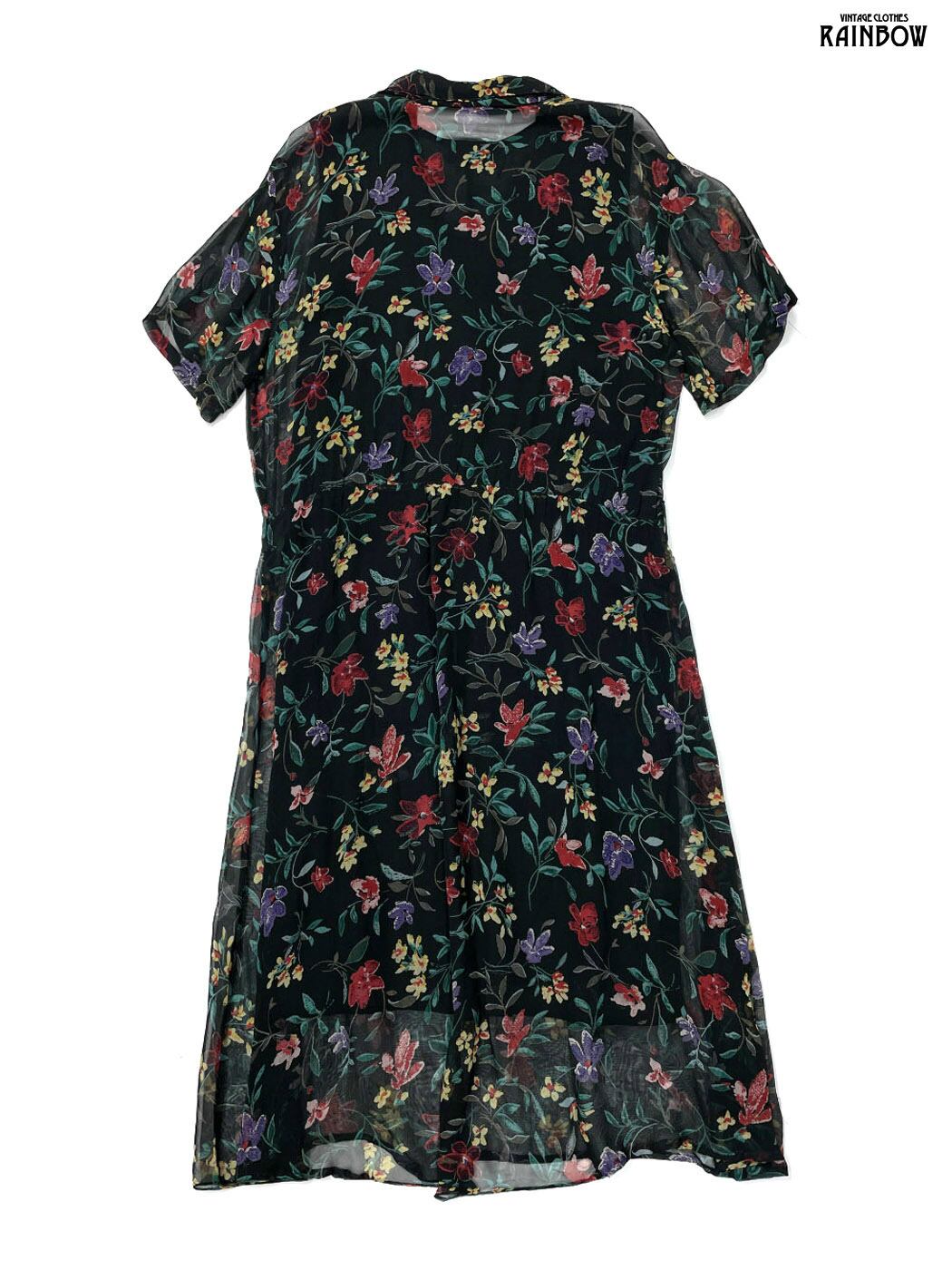 #ワンピース #ハーフスリーブ #ロング丈 #ウエスト切り替え #黒 #花柄 #クラシック #シフォン #シフォンワンピース