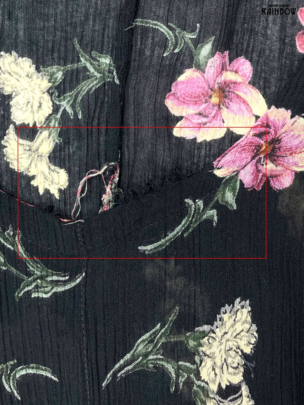 #ワンピース #ハーフスリーブ #ロング丈 #Aライン #黒 #花柄 #シワ加工 #クラシック #レーヨン #半袖花柄ワンピース