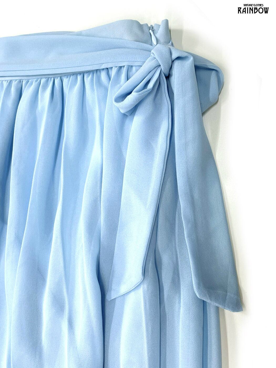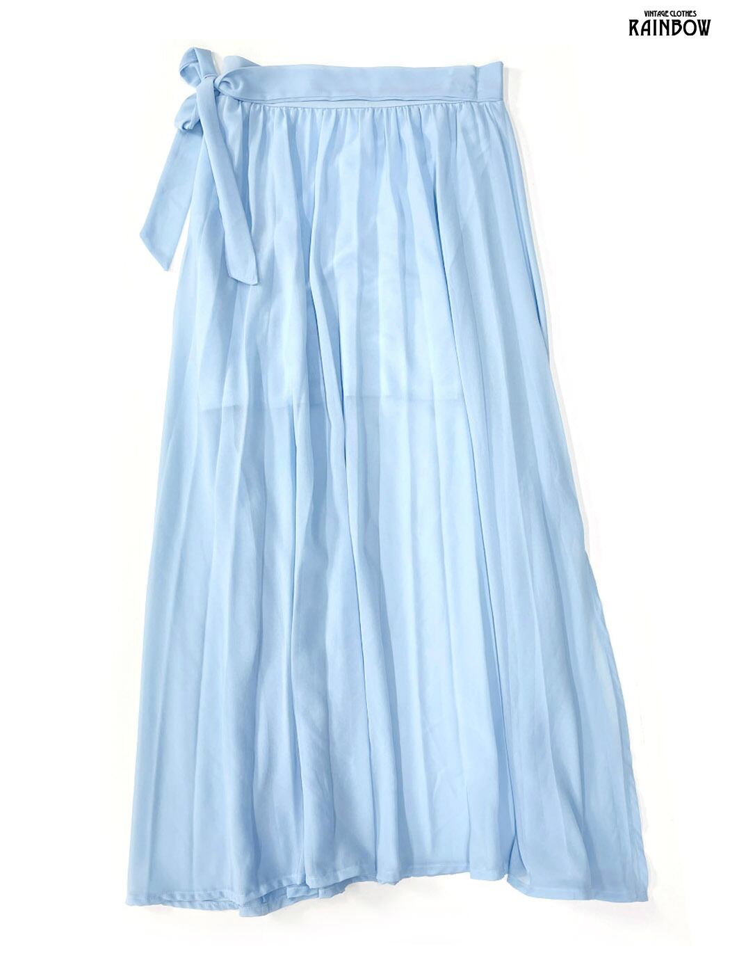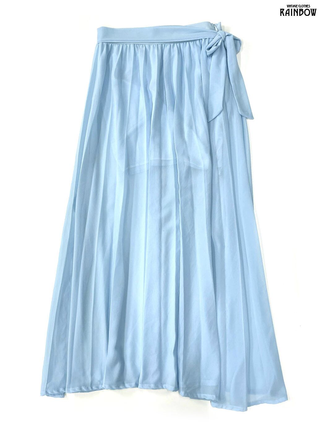 #スカート #ロング丈 #プリーツ #水色 #無地 #リボン #ガーリー #シフォン #シフォンスカート
