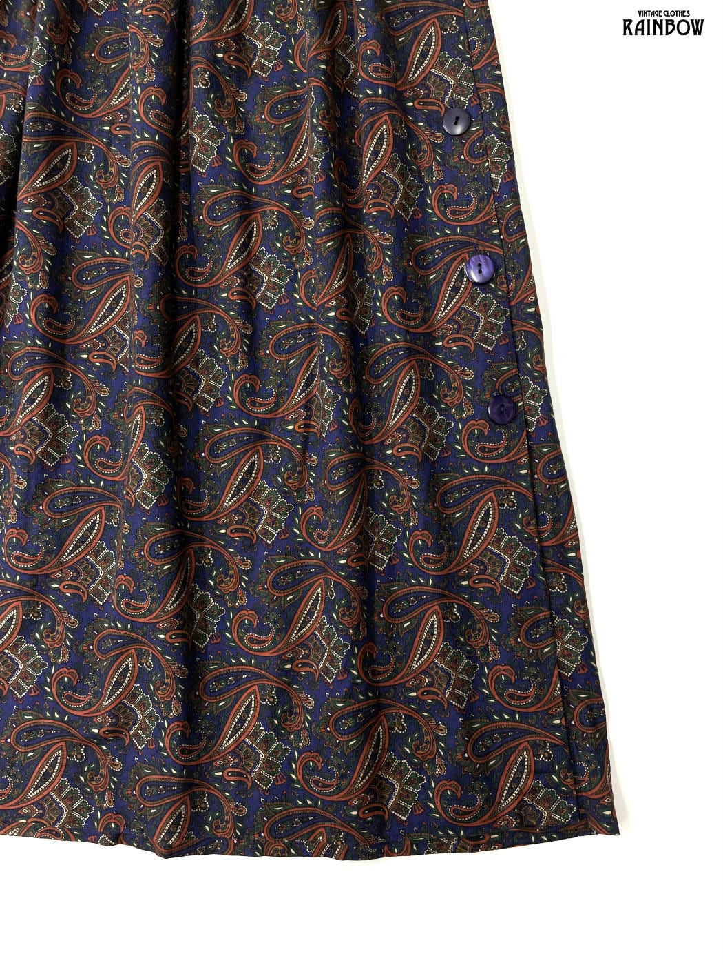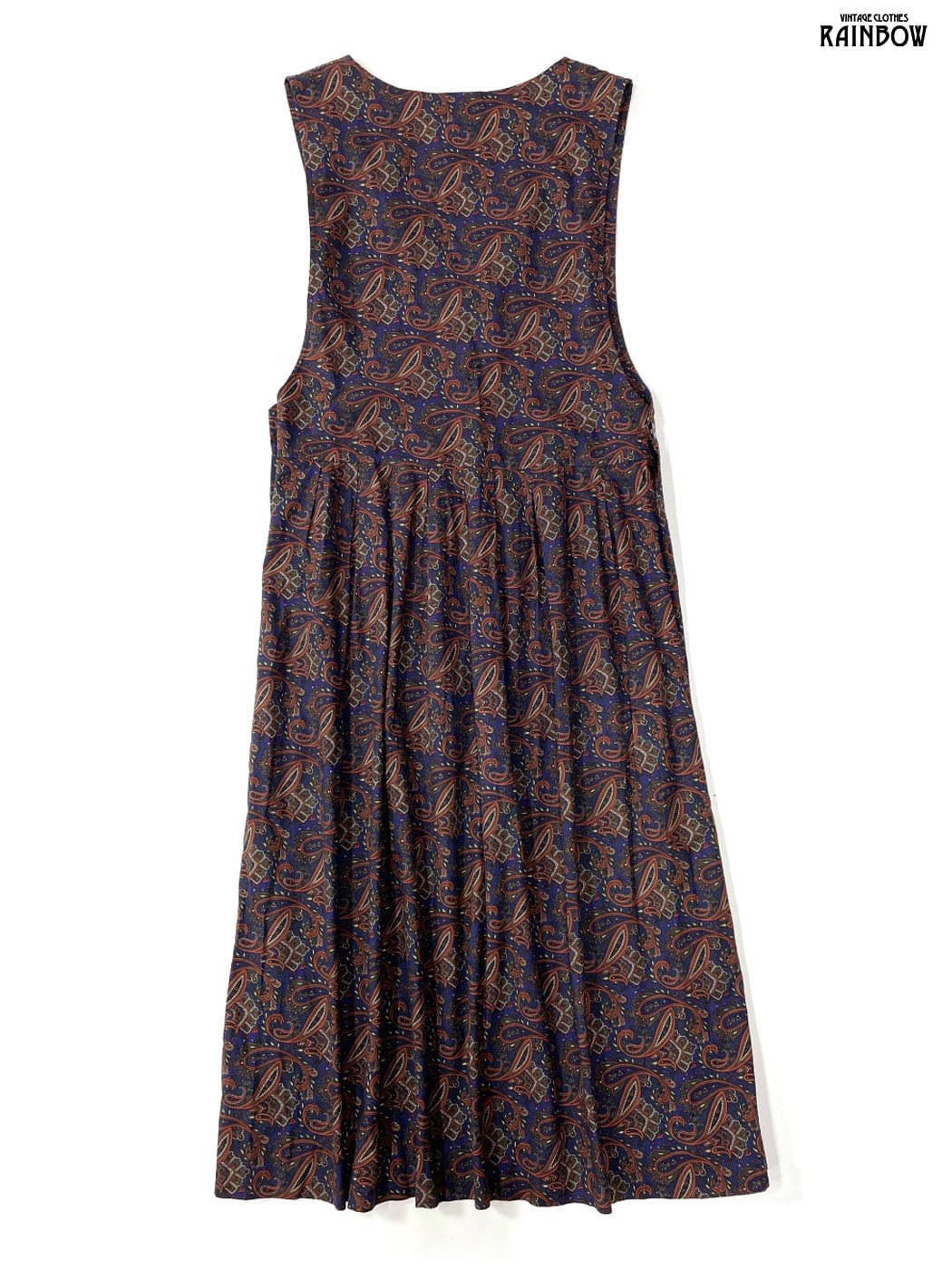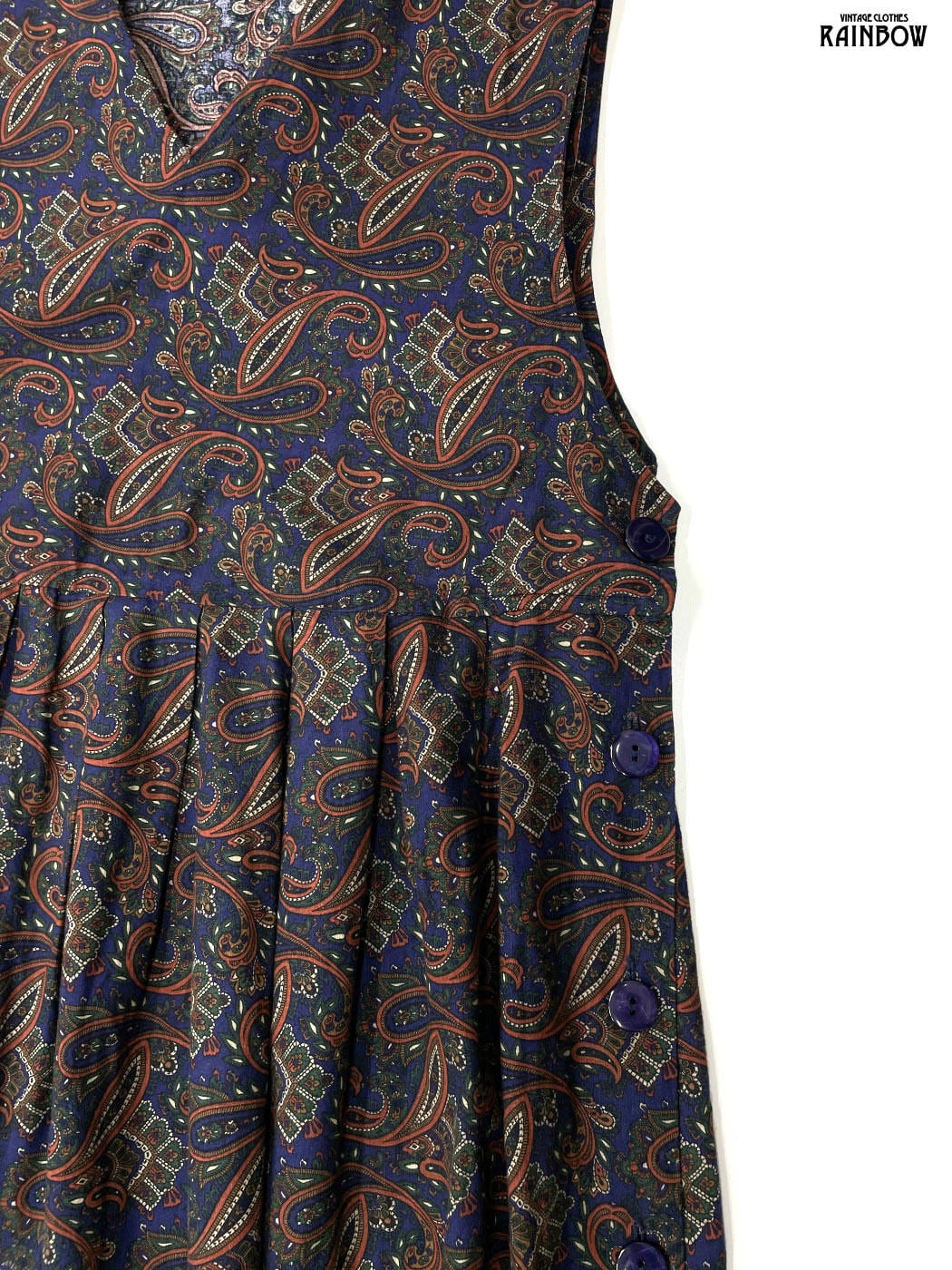 #ワンピース #ノースリーブ #ロング丈 #ウエスト切り替え #紺 #総柄 #ペイズリー柄 #クラシック #コットン #ノースリーブ総柄ワンピース