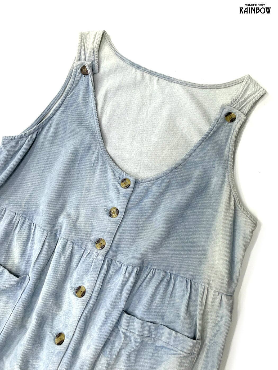 #ワンピース #ノースリーブ #ロング丈 #ウエスト切り替え #青 #水色 #無地 #前開き #コーデュロイ #コーデュロイワンピース