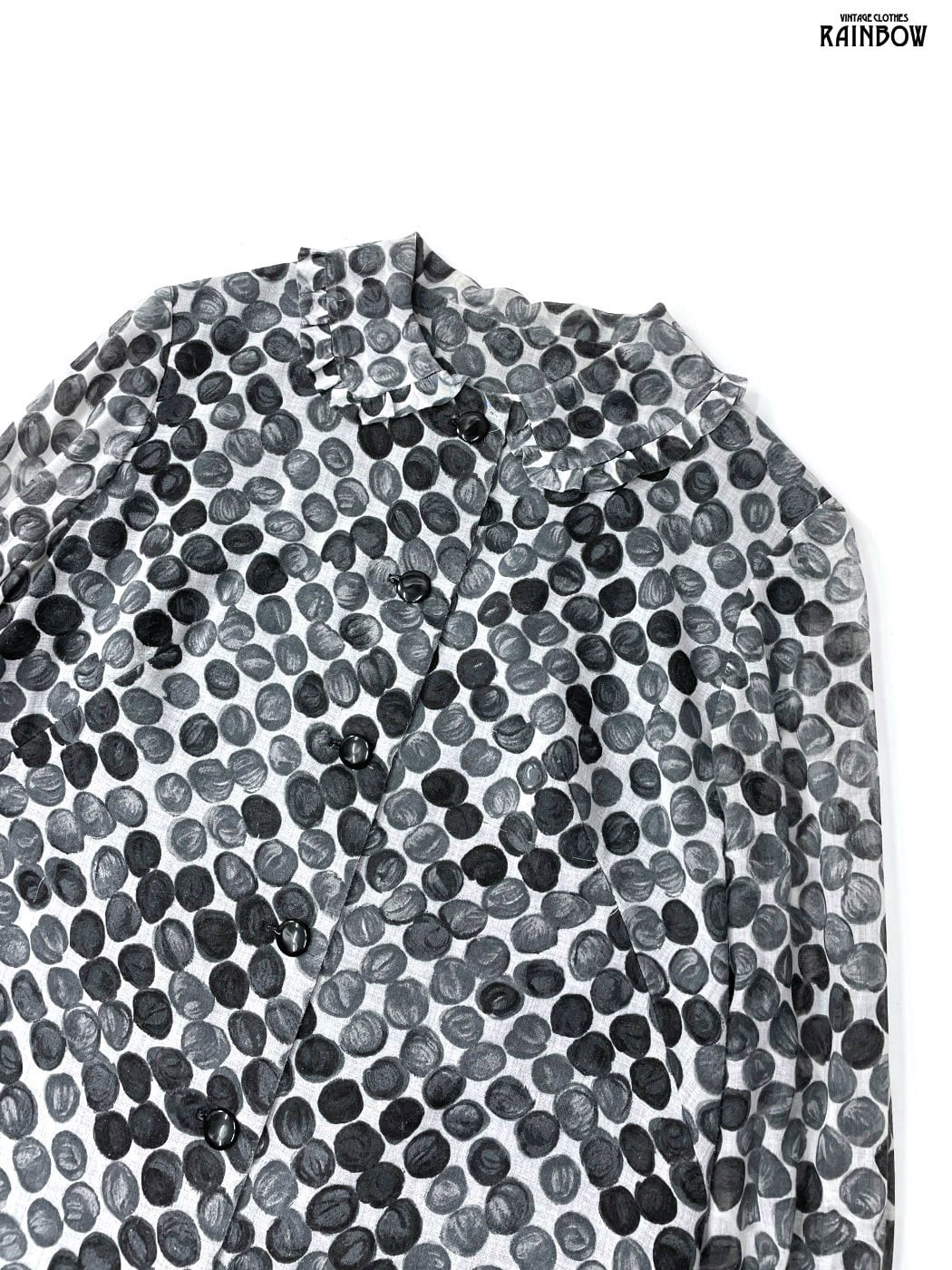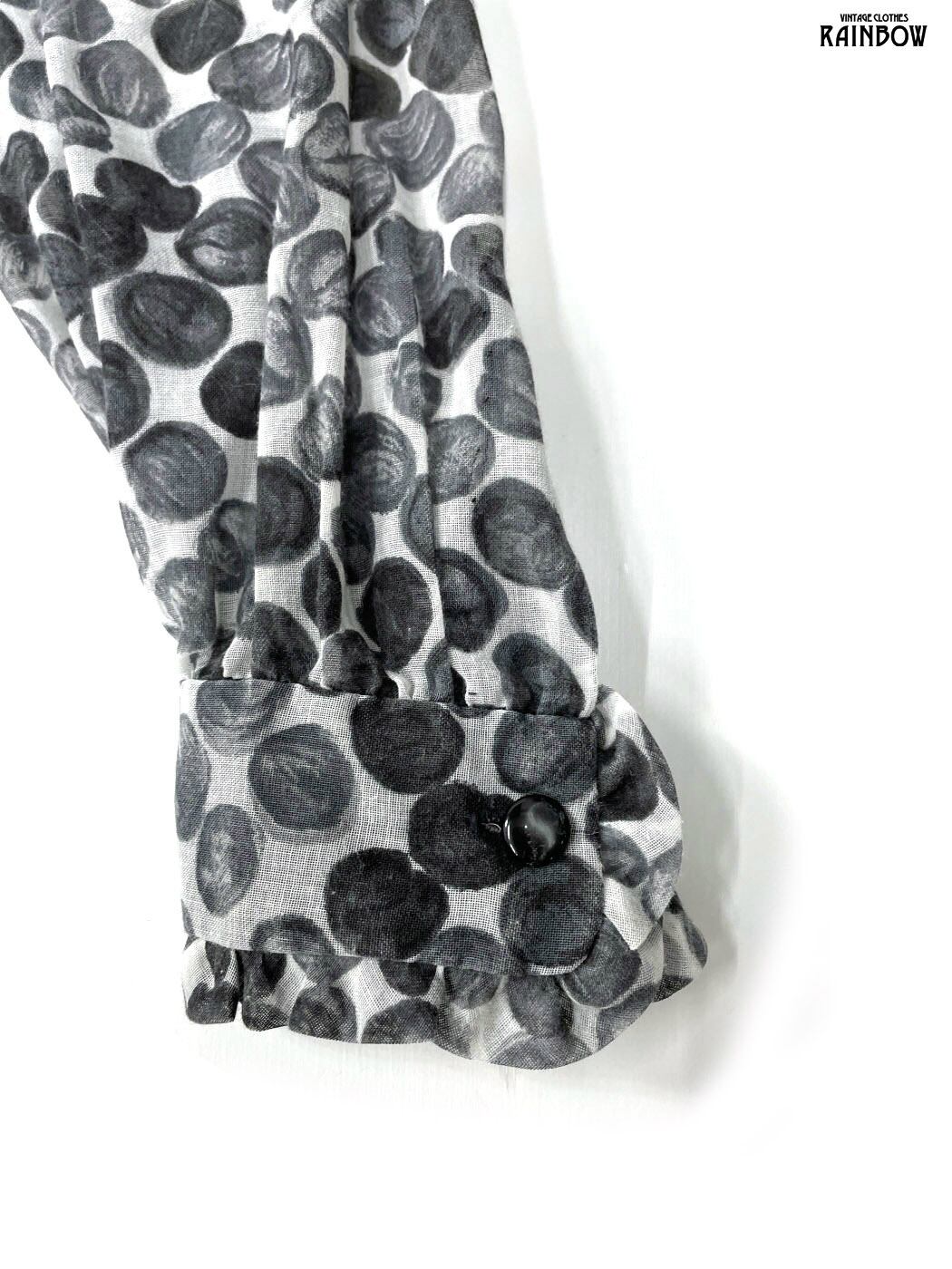 #ワンピース #ロングスリーブ #膝丈 #グレー #総柄 #コットン #長袖総柄ワンピース