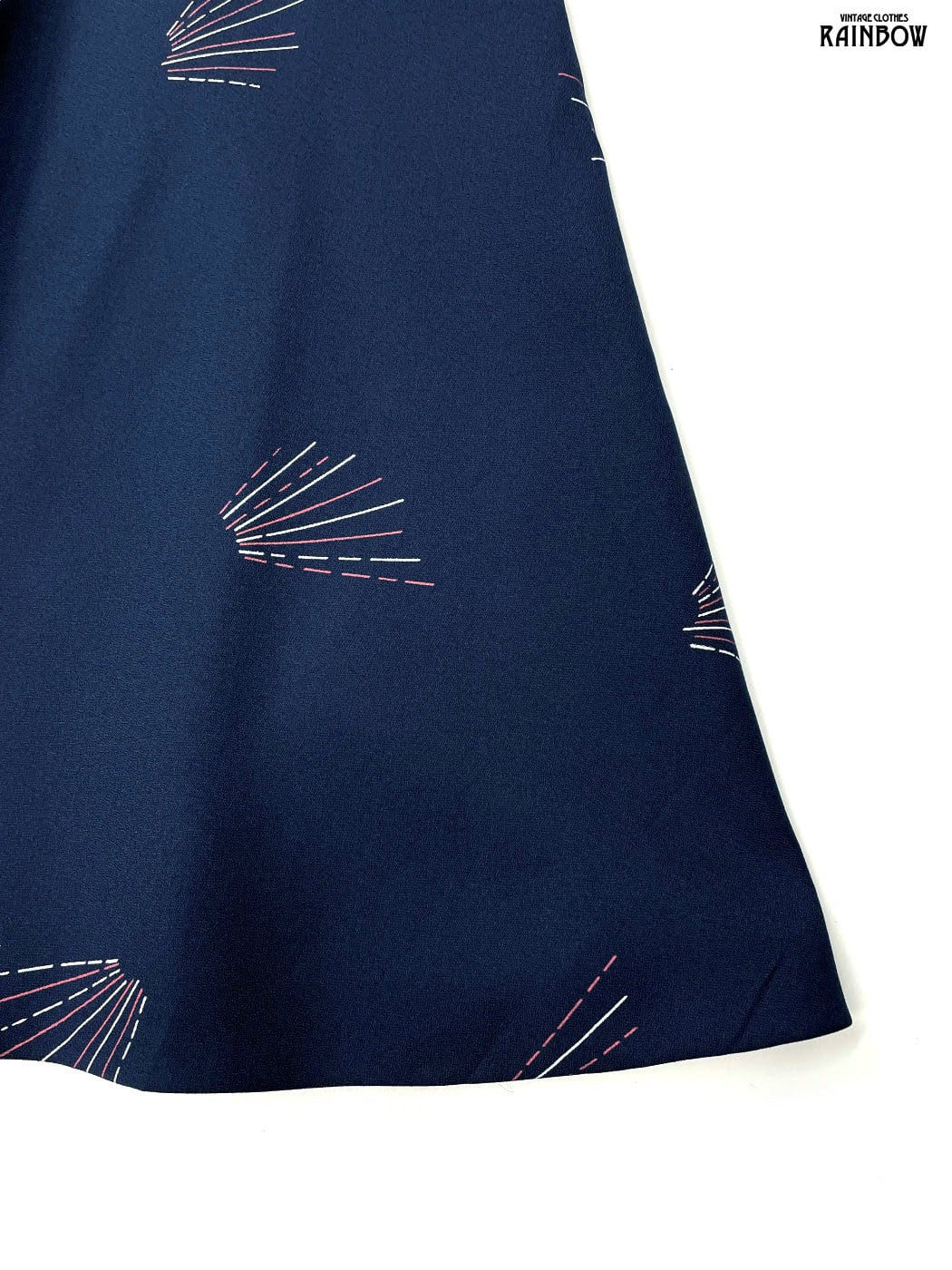 #ワンピース #ロングスリーブ #膝丈 #ウエスト切り替え #紺 #総柄 #長袖総柄ワンピース