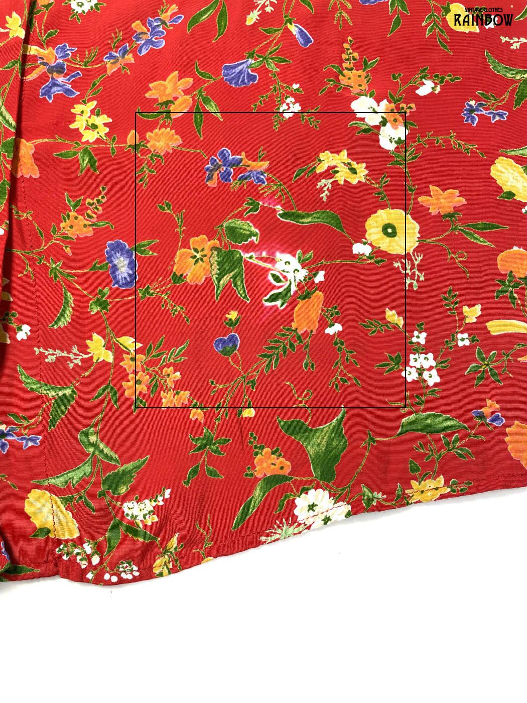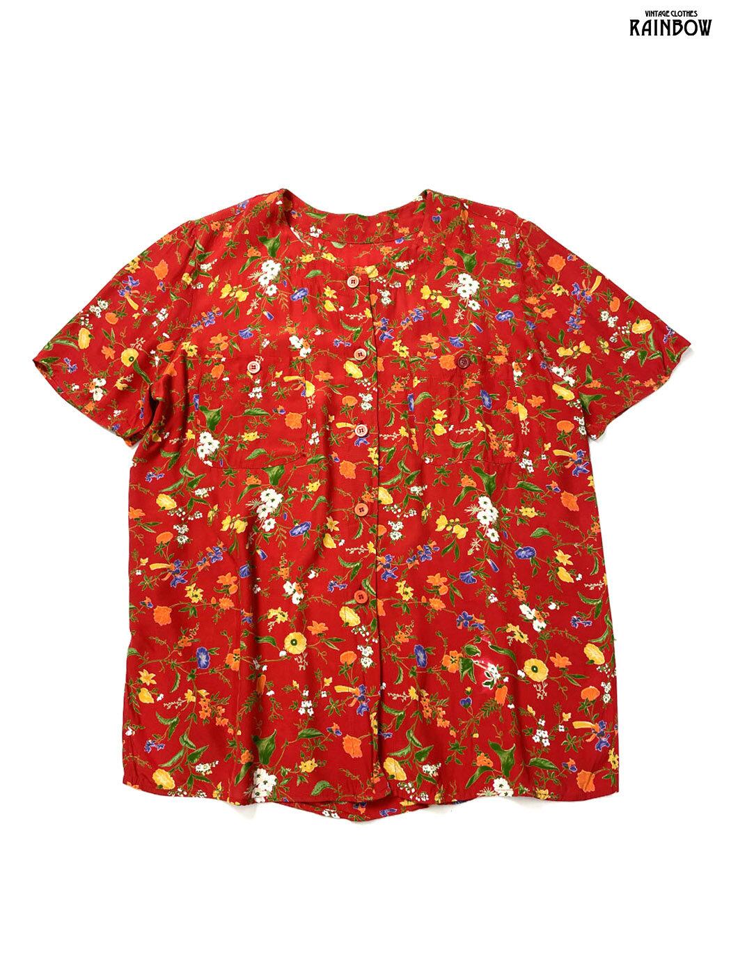 #ブラウス #シャツ #ハーフスリーブ #赤 #花柄 #スリット #レーヨン #柄シャツ