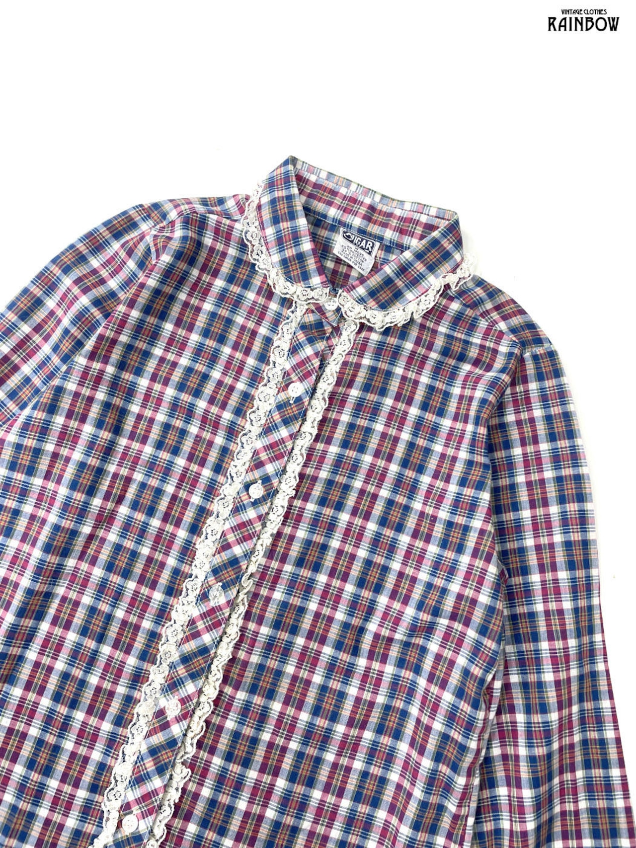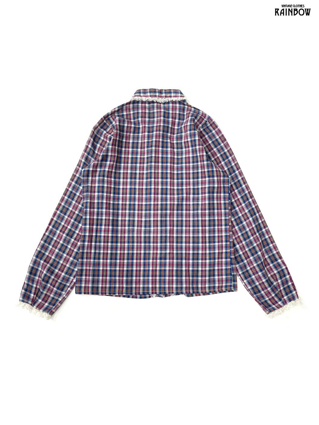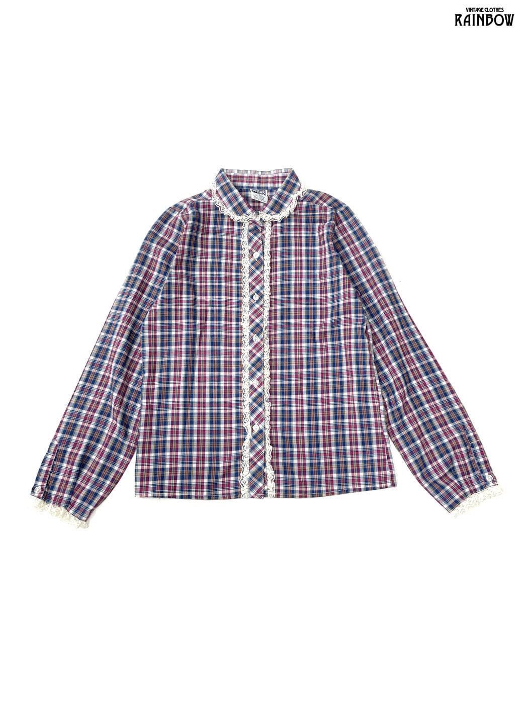 #ブラウス #bブラウス #ロングスリーブ #紫 #チェック柄 #レース #ガーリー #コットン #チェック柄シャツ