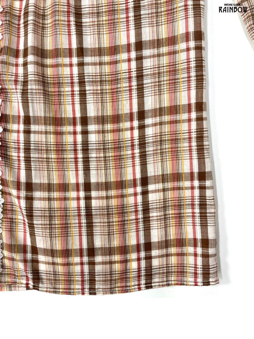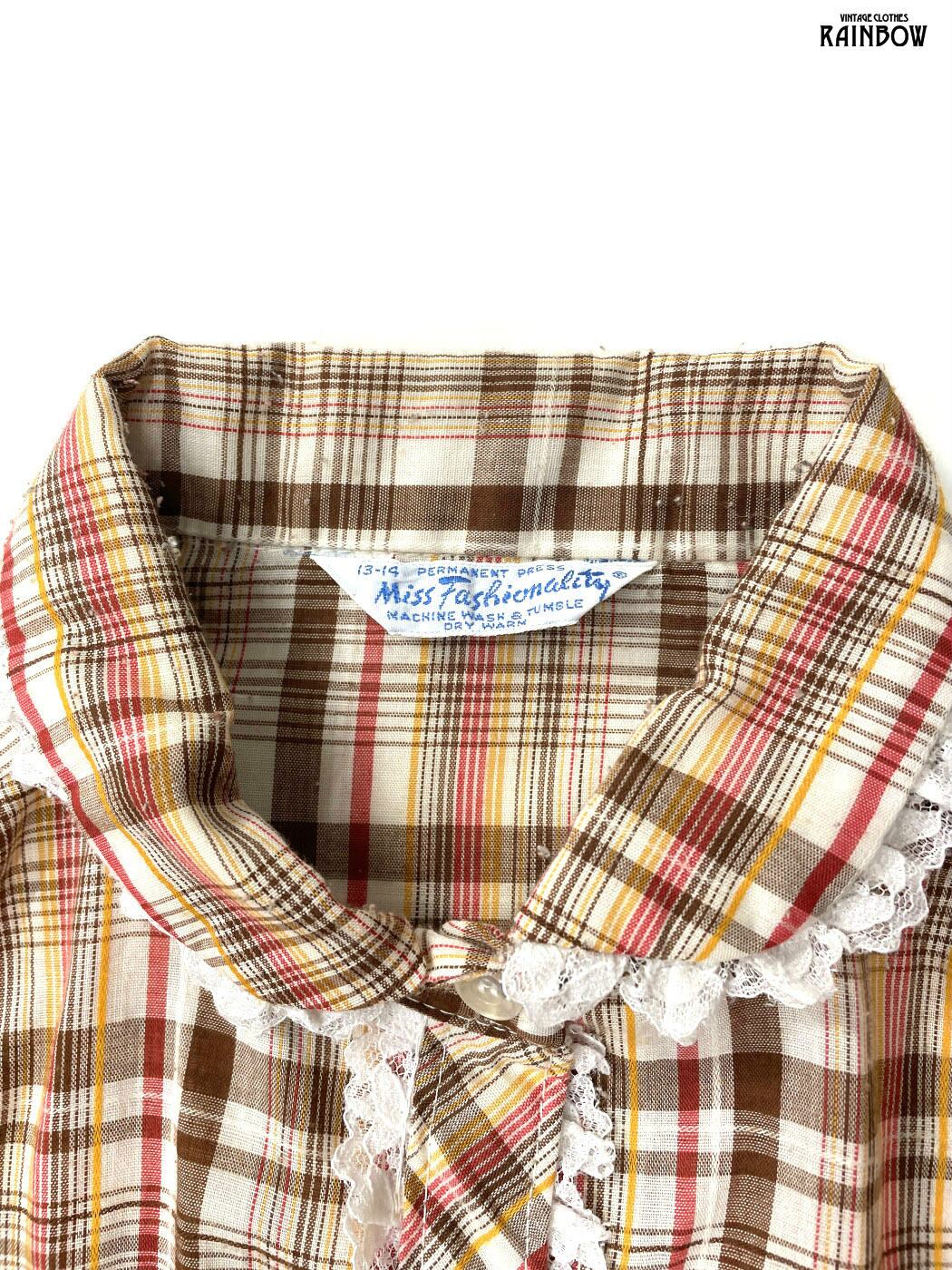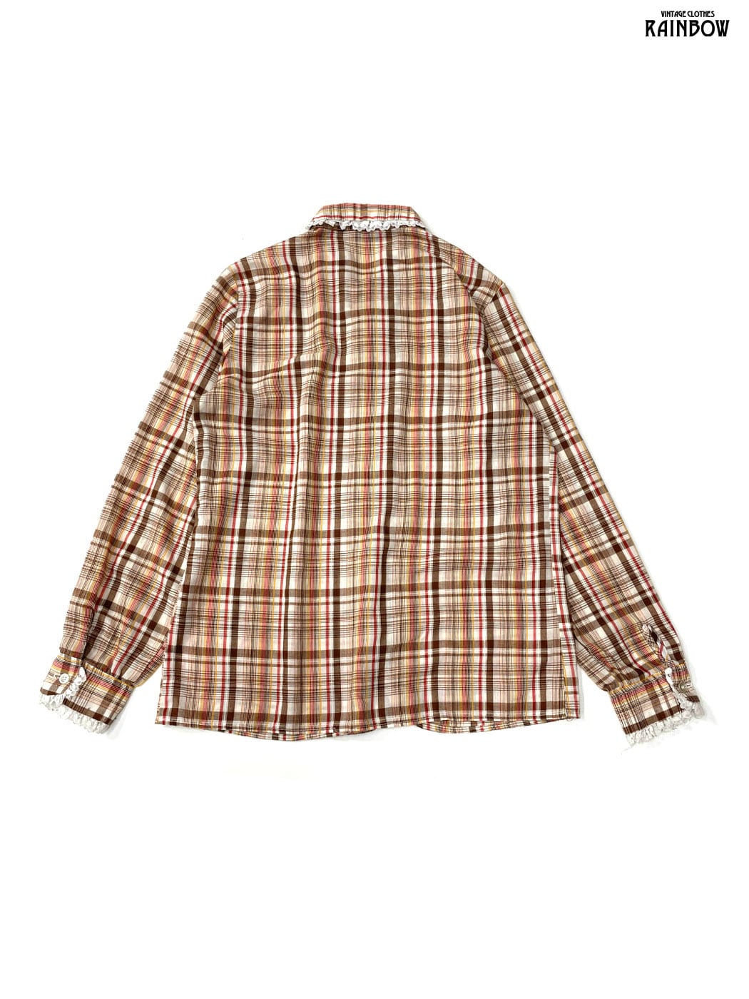 #ブラウス #bブラウス #ロングスリーブ #茶 #オレンジ #チェック柄 #レース #ガーリー #コットン #チェック柄シャツ