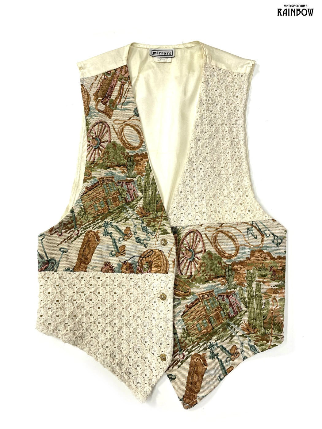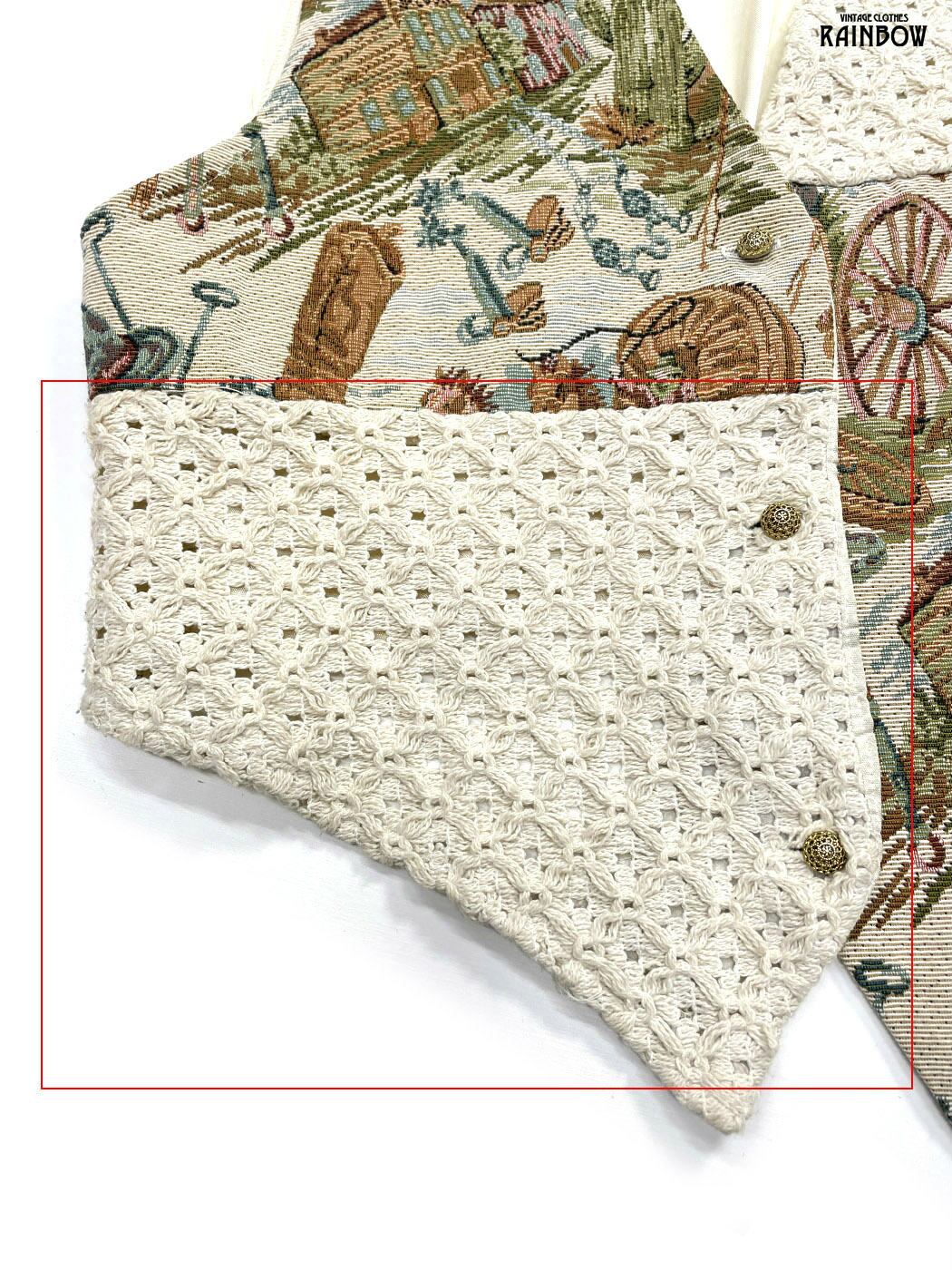 #トップス #ベスト #ノースリーブ #ベージュ #総柄 #アメリカ製 #コットン #ベスト