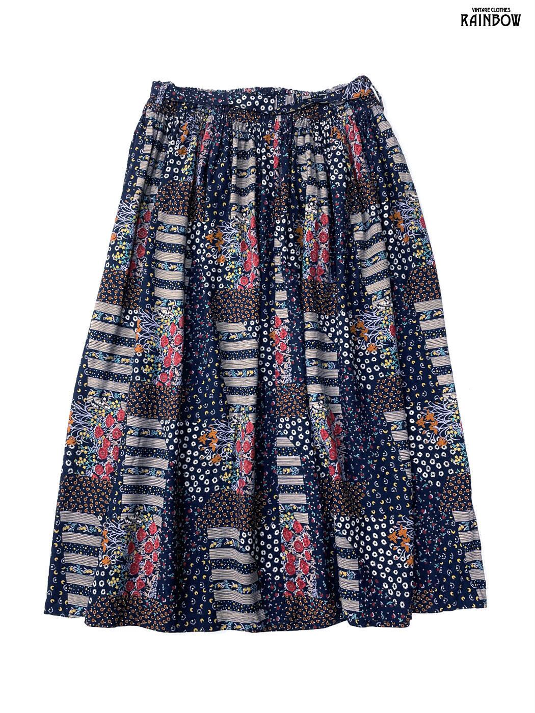 #スカート #膝丈 #フレア #紺 #花柄 #リボン #クラシック #レーヨン #花柄スカート