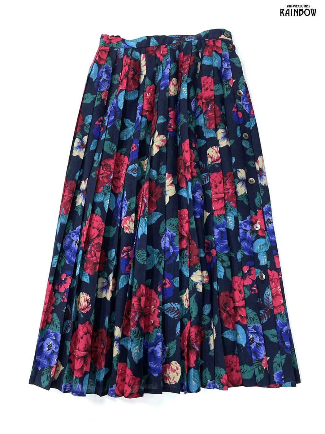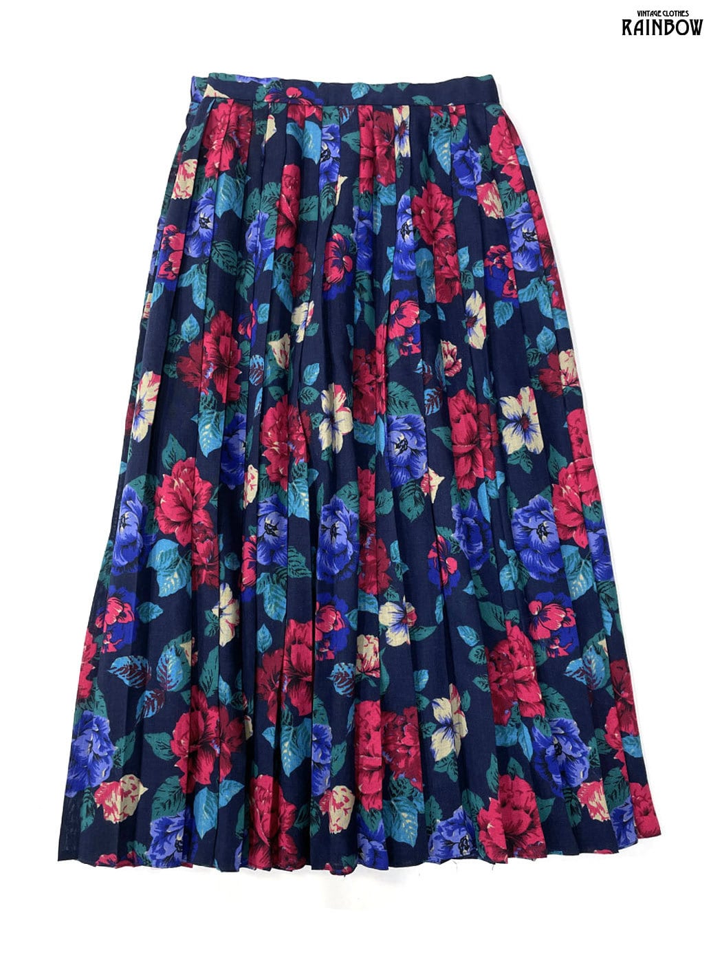 #スカート #ロング丈 #プリーツ #青 #紺 #花柄 #クラシック #コットン #花柄スカート