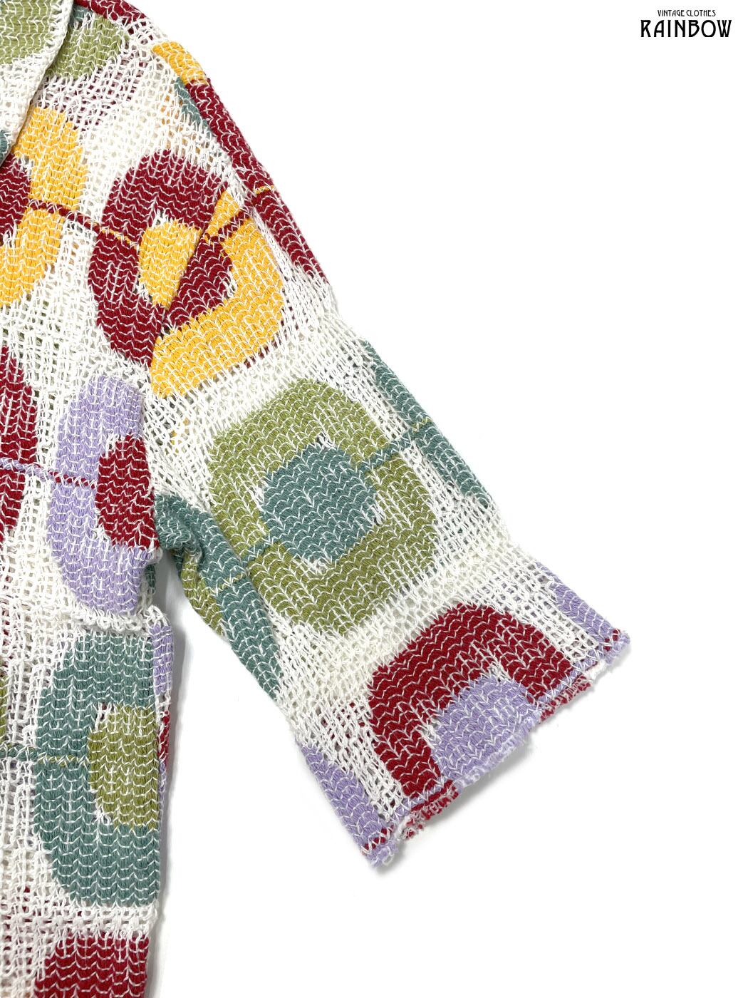 #ニット #カーディガン #ロングスリーブ #赤 #緑 #生成り #総柄 #イタリア製 #前開き #ヴィンテージ #ニット地 #柄カーディガン