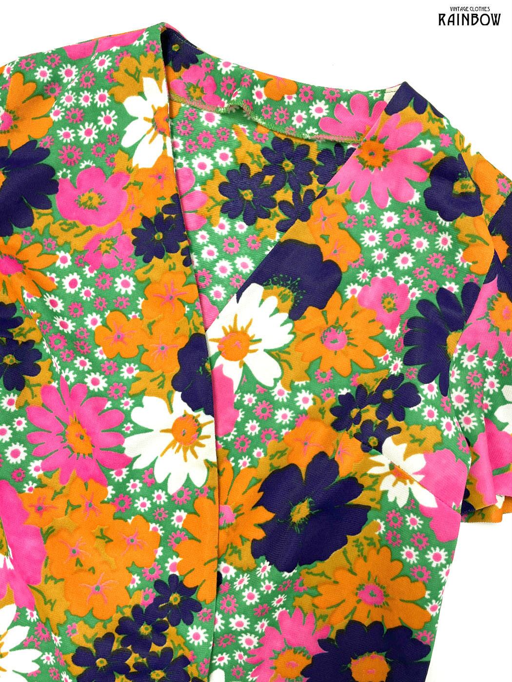 #ブラウス #bブラウス #ハーフスリーブ #ピンク #オレンジ #緑 #花柄 #前開き #ガーリー #柄シャツ