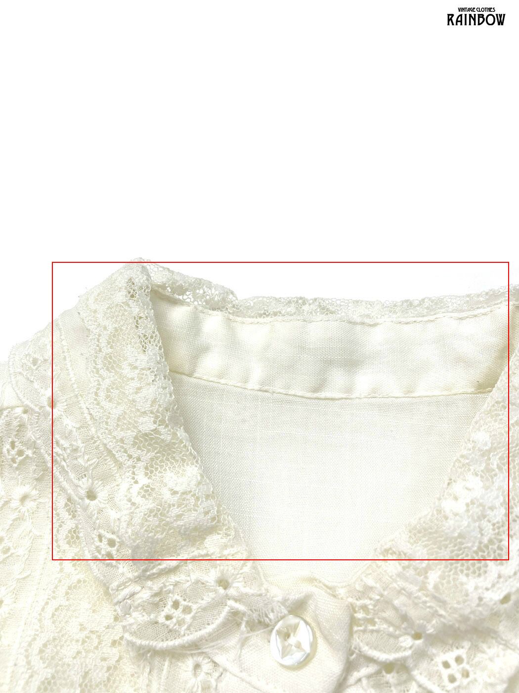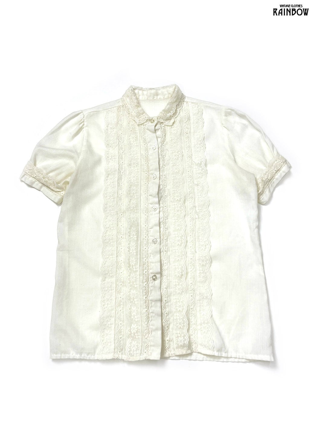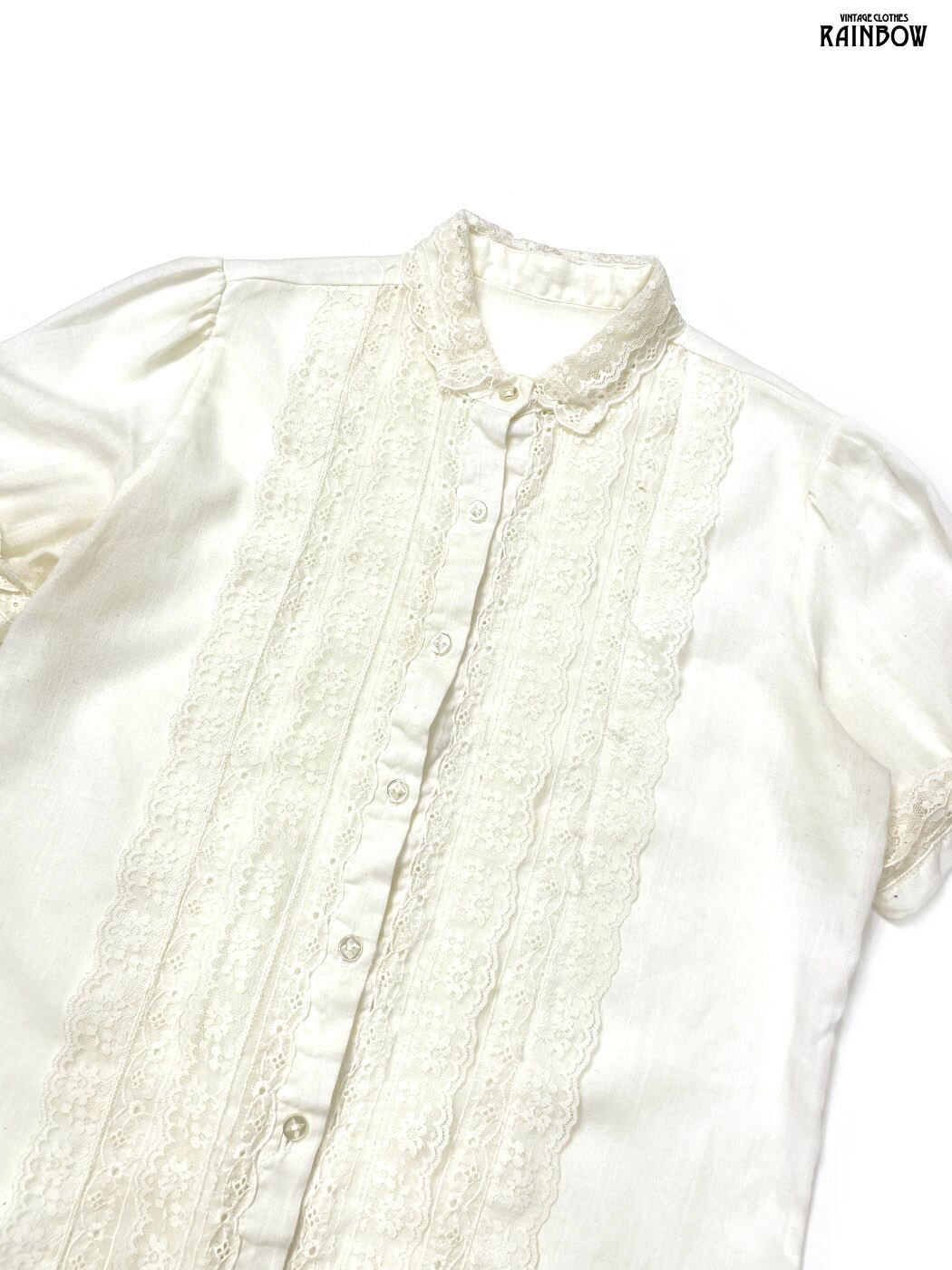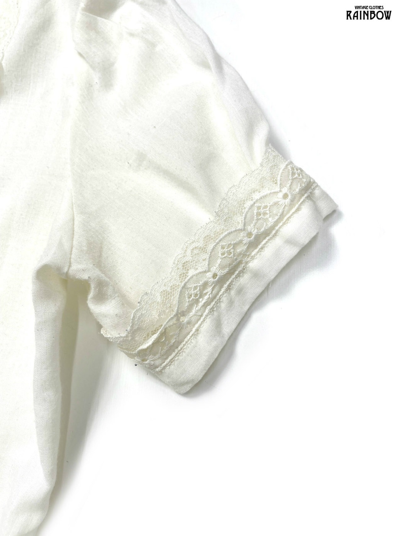 #ブラウス #bブラウス #ハーフスリーブ #ベージュ #無地 #レース #ヴィンテージ #コットン #半袖無地ブラウス