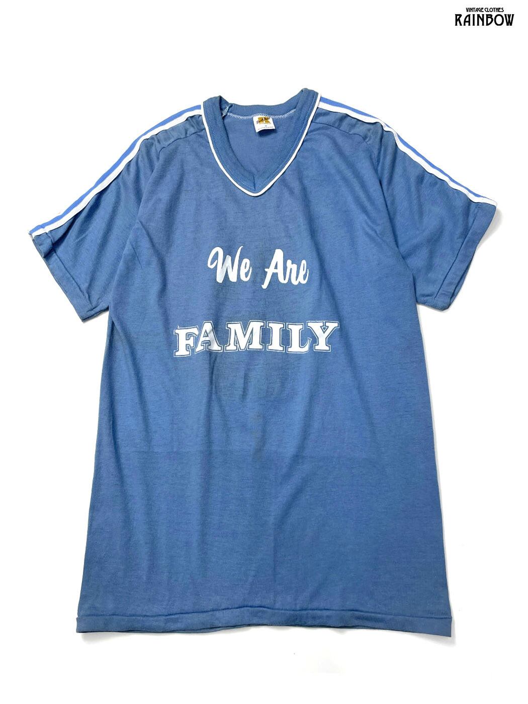 #トップス #Tシャツ #ハーフスリーブ #青 #ロゴデザイン #バックプリント We Are FAMILY #コットン #半袖ロゴTシャツ