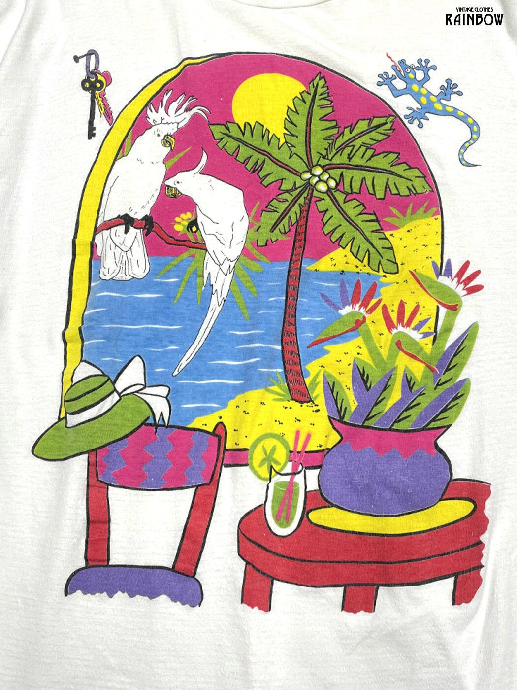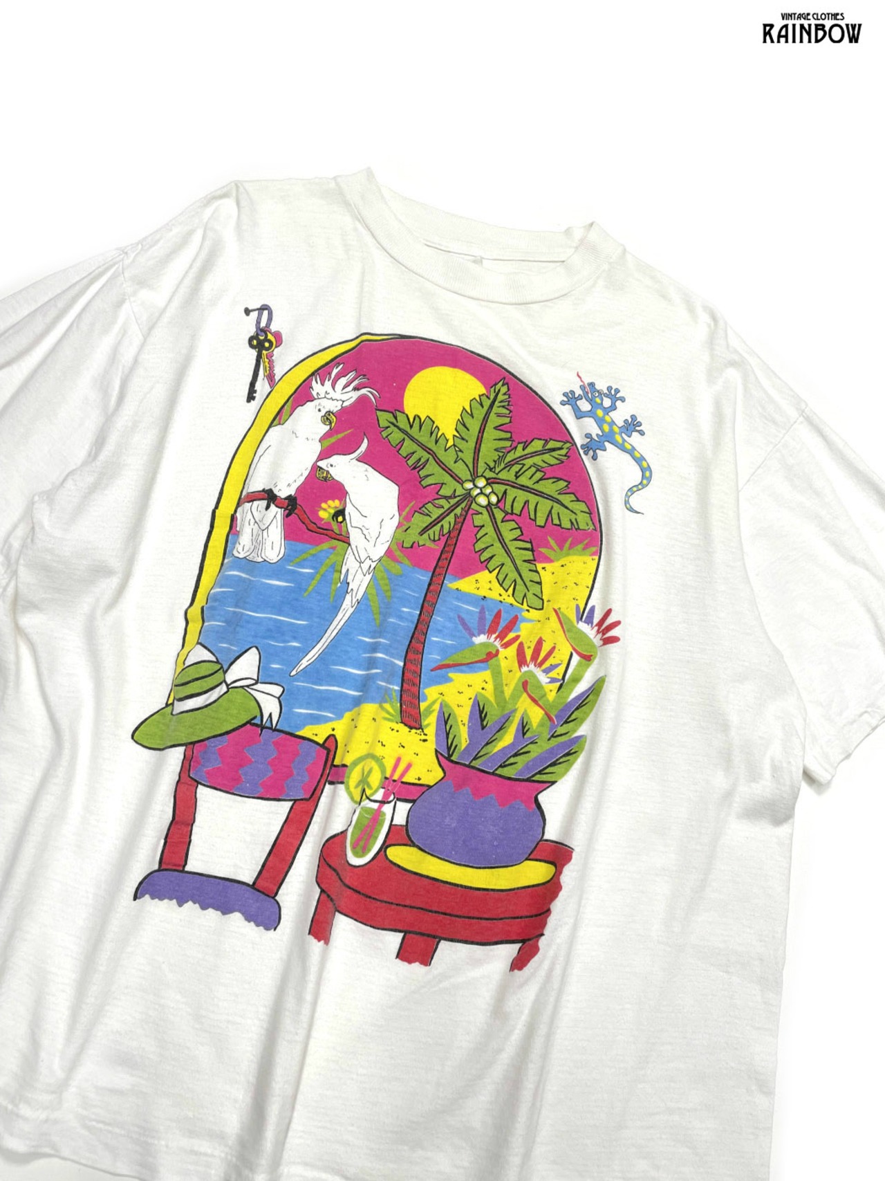 #トップス #Tシャツ #ハーフスリーブ #白 #プリントデザイン #リゾート #コットン #半袖プリントTシャツ