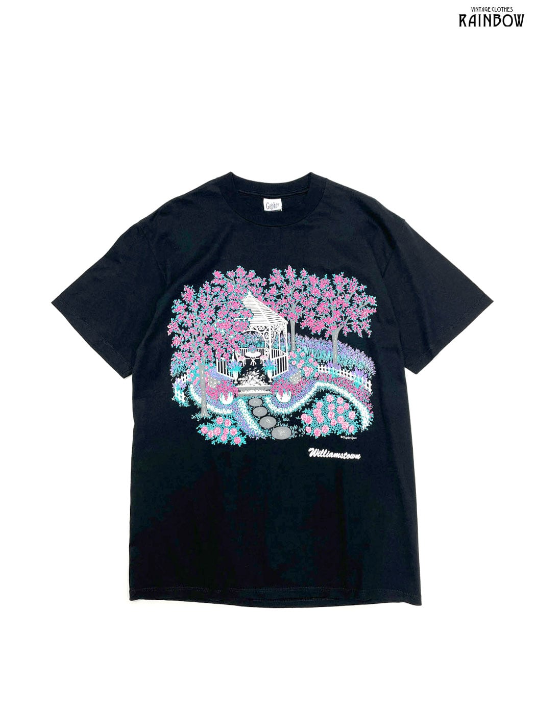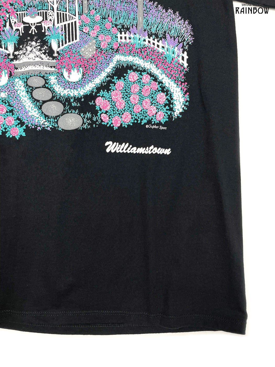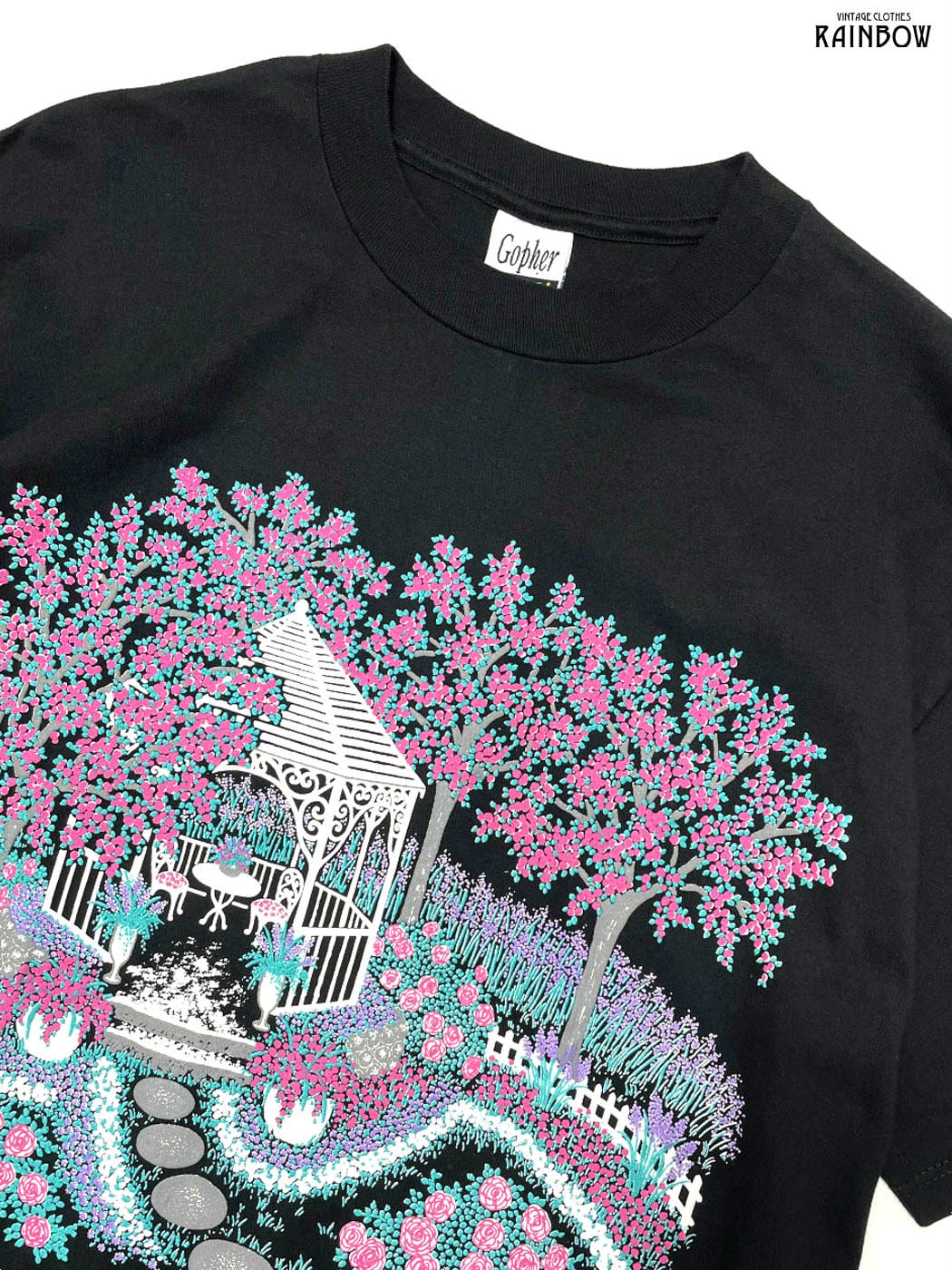 古着 Gopher Sport 花 アメリカ製 プリント コットン100% 半袖 Tシャツ 黒 (ttu2506129)
