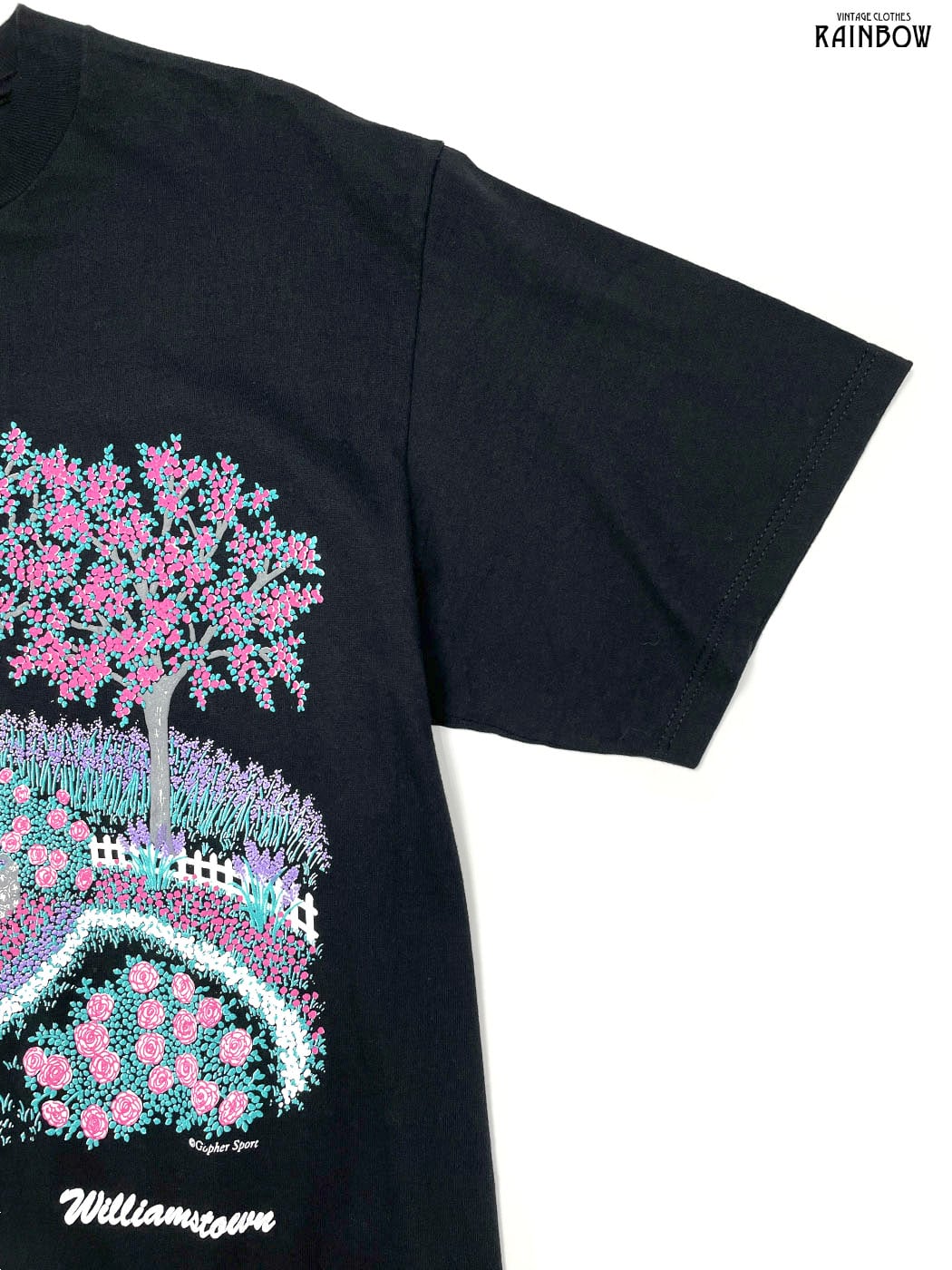 #トップス #Tシャツ #ハーフスリーブ #黒 #プリントデザイン #花 #アメリカ製 #コットン #半袖プリントTシャツ