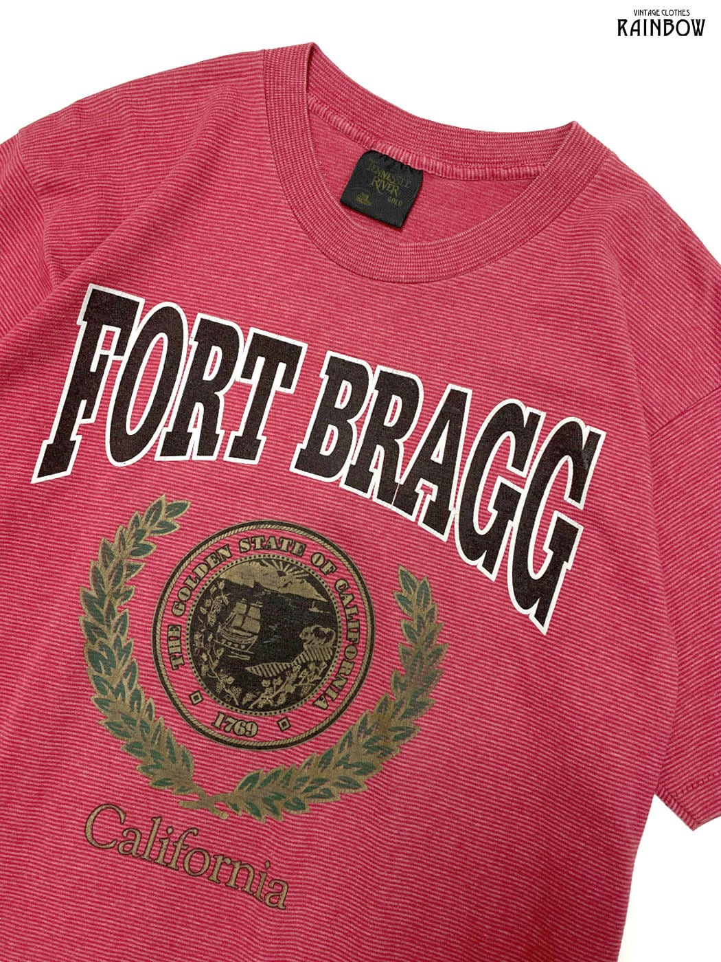 #トップス #Tシャツ #ハーフスリーブ #赤 #ボーダー柄 #ロゴデザイン #カレッジロゴ #FORT BRAGG California #アメリカ製 #コットン #半袖ロゴTシャツ
