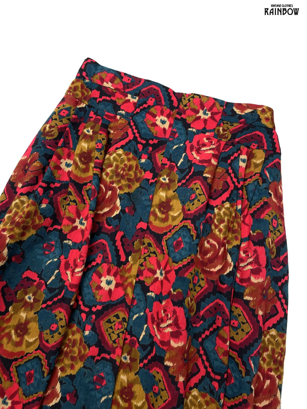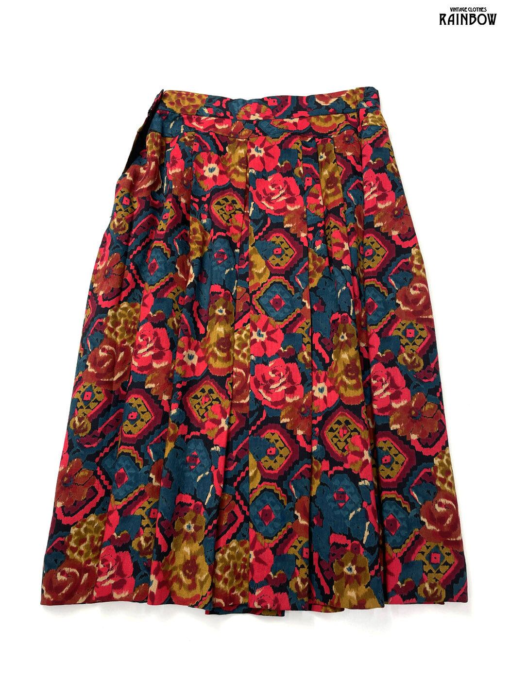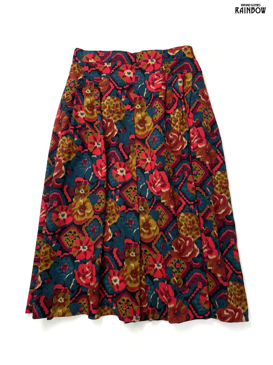 #スカート #膝丈 #フレア #茶 #花柄 #フランス製 #クラシック #ウール #花柄スカート