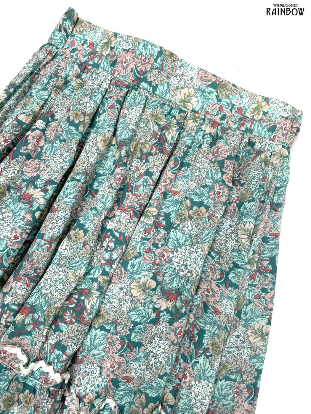 #スカート #膝丈 #フレア #緑 #花柄 #フリル #リボン #レース #ガーリー #コットン #花柄スカート