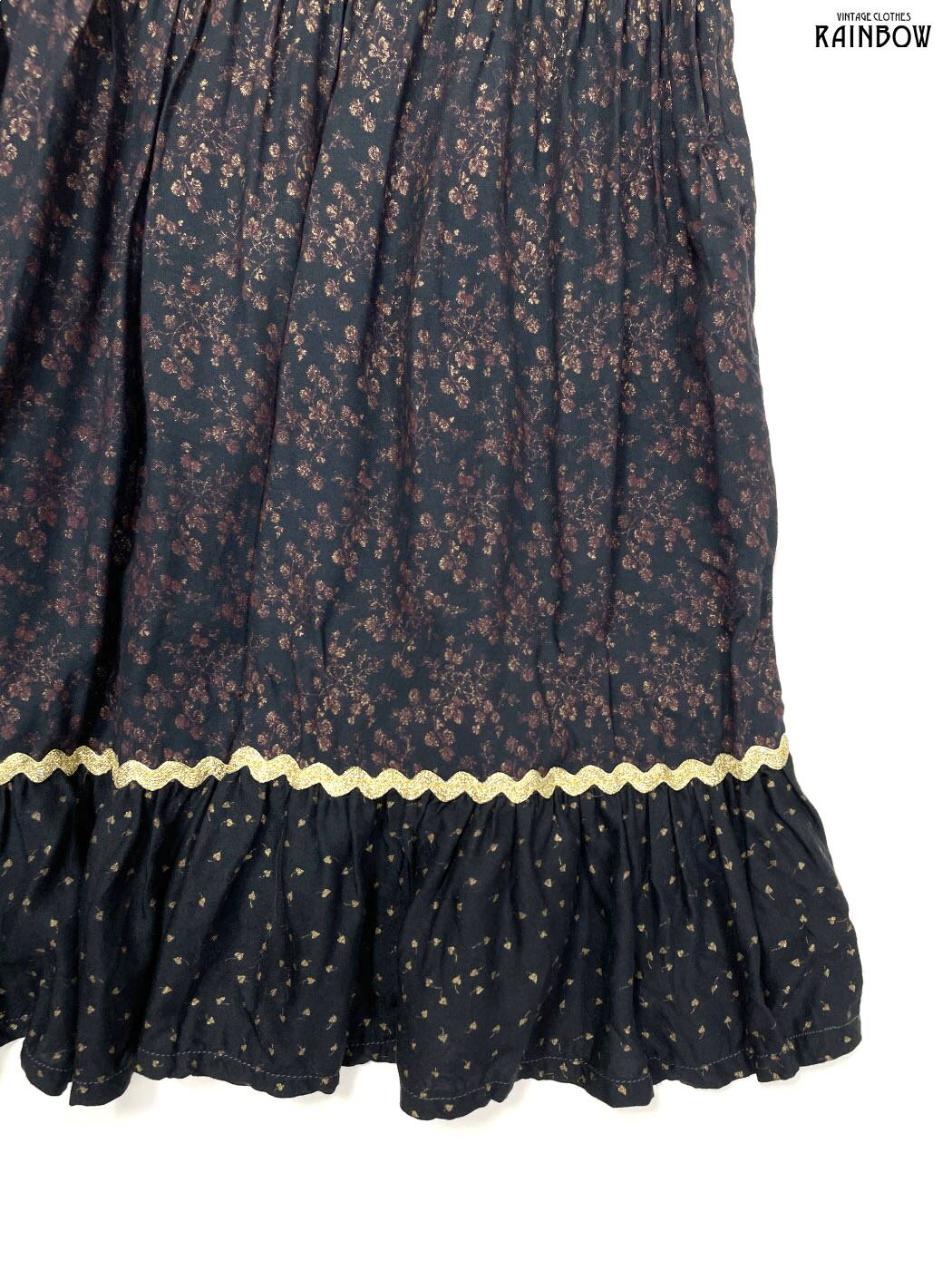 #スカート #膝丈 #フレア #ティアード #黒 #ゴールド #花柄 #フリル #レース #クラシック #レーヨン #花柄スカート