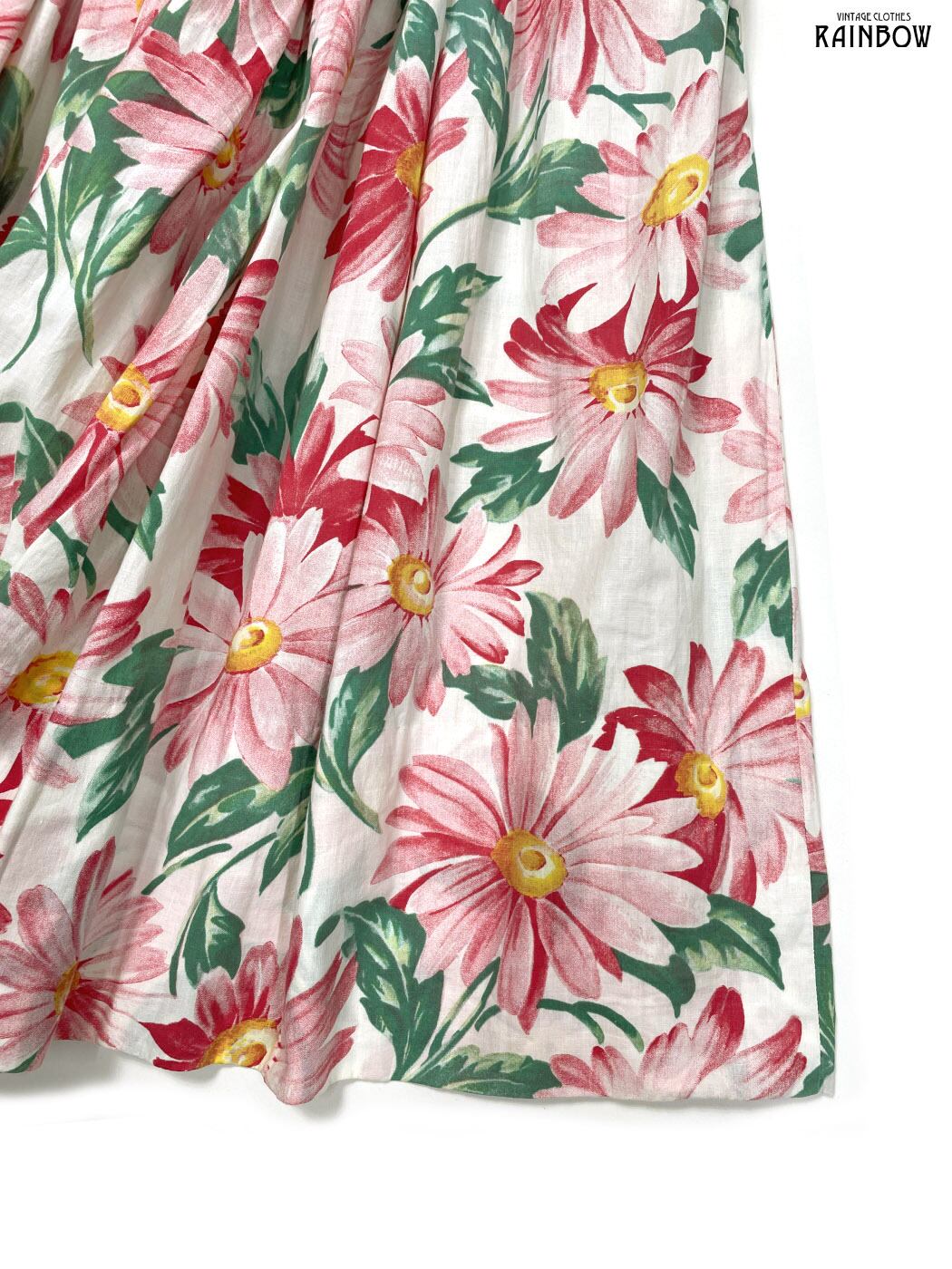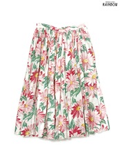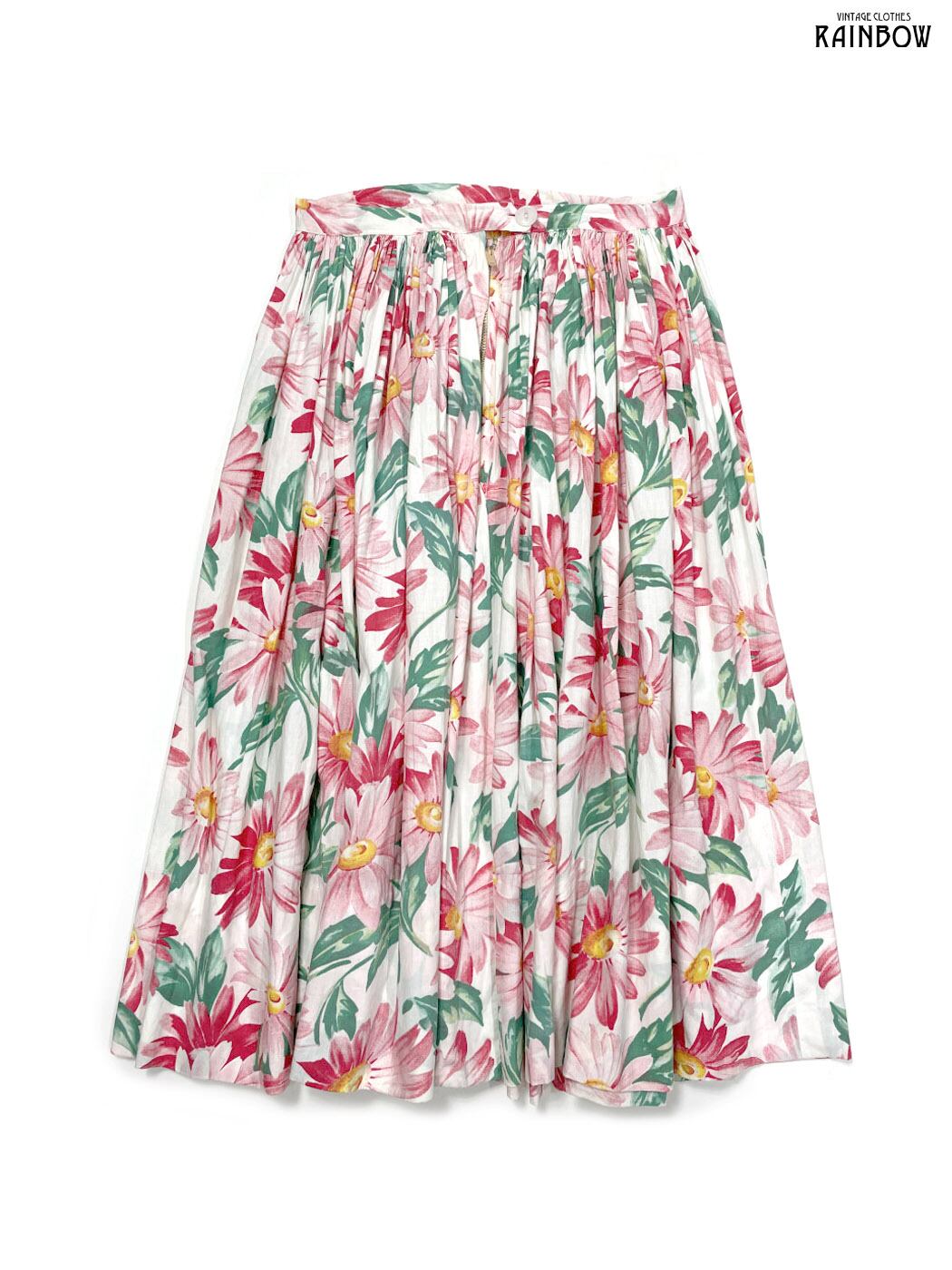 #スカート #膝丈 #フレア #白 #ピンク #花柄 #TALONジップ #ガーリー #コットン #花柄スカート