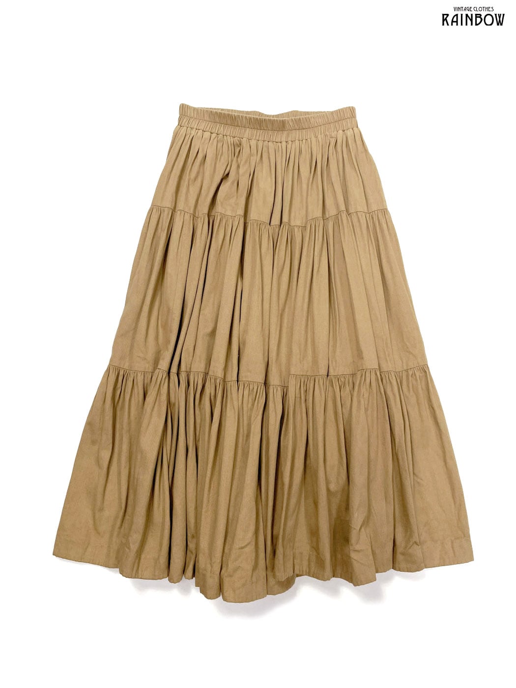 #スカート #膝丈 #ティアード #ゴムウエスト #ベージュ #無地 #アメリカ製 #ナチュラル #コットン #無地ライトスカート