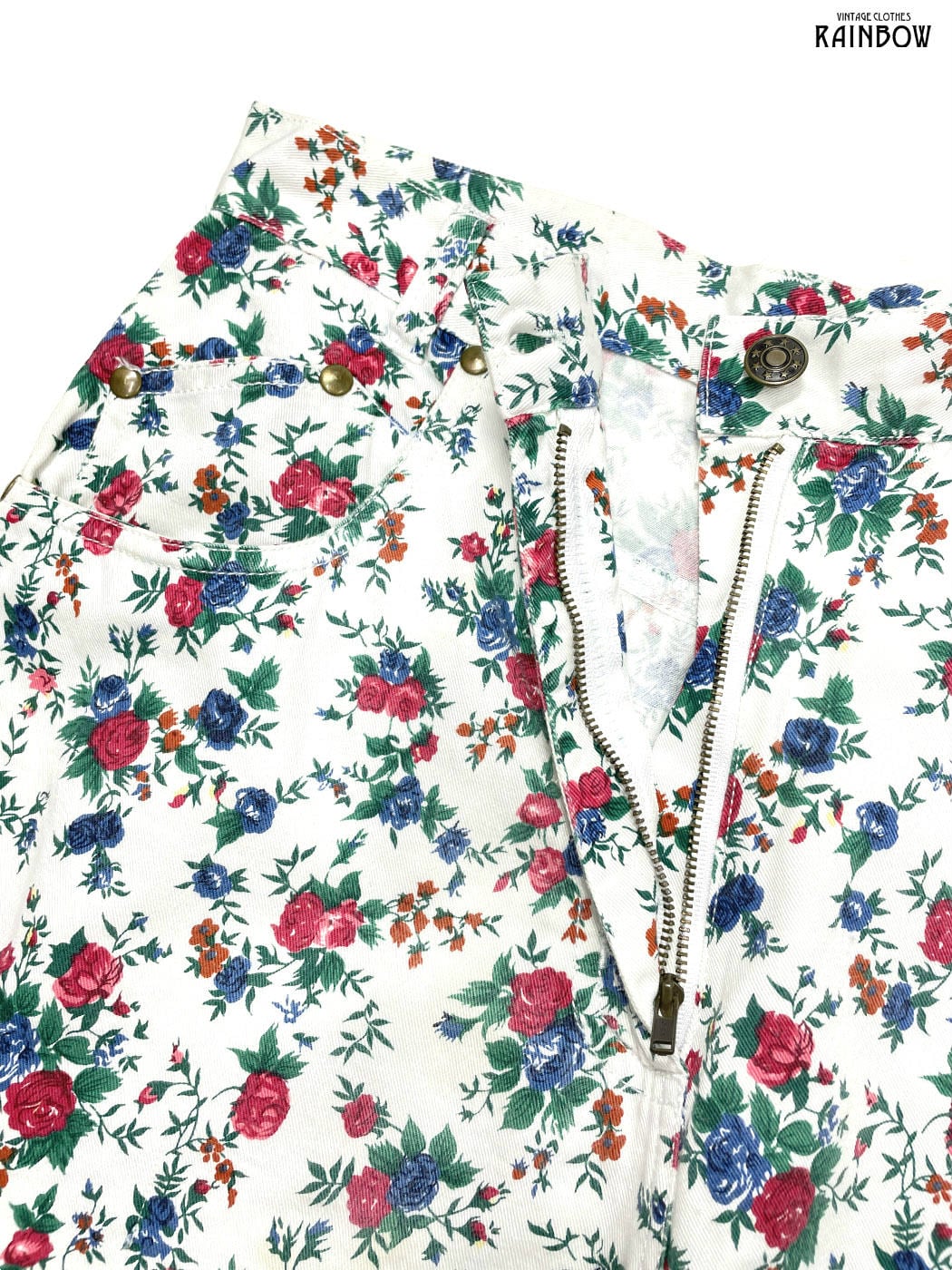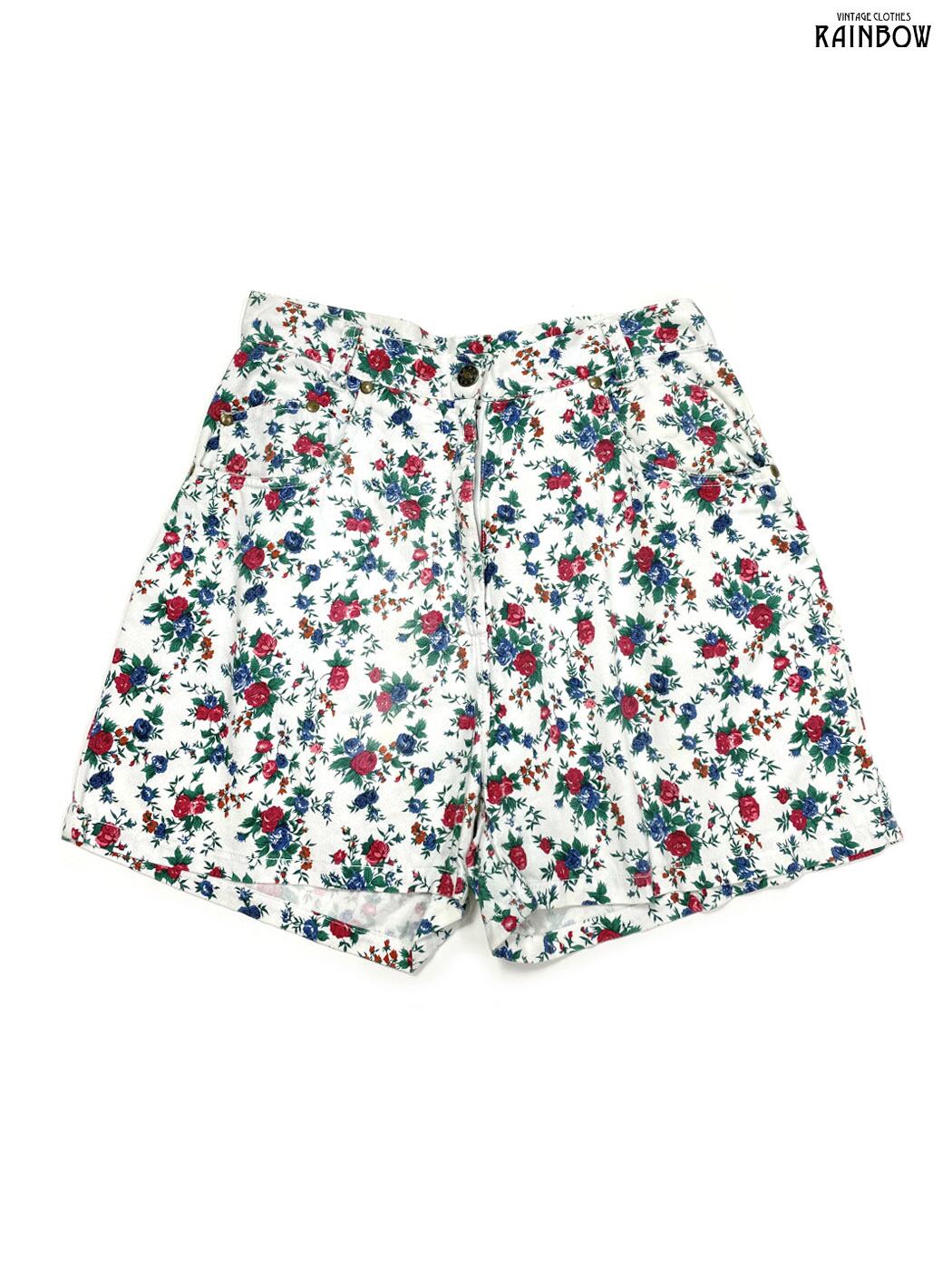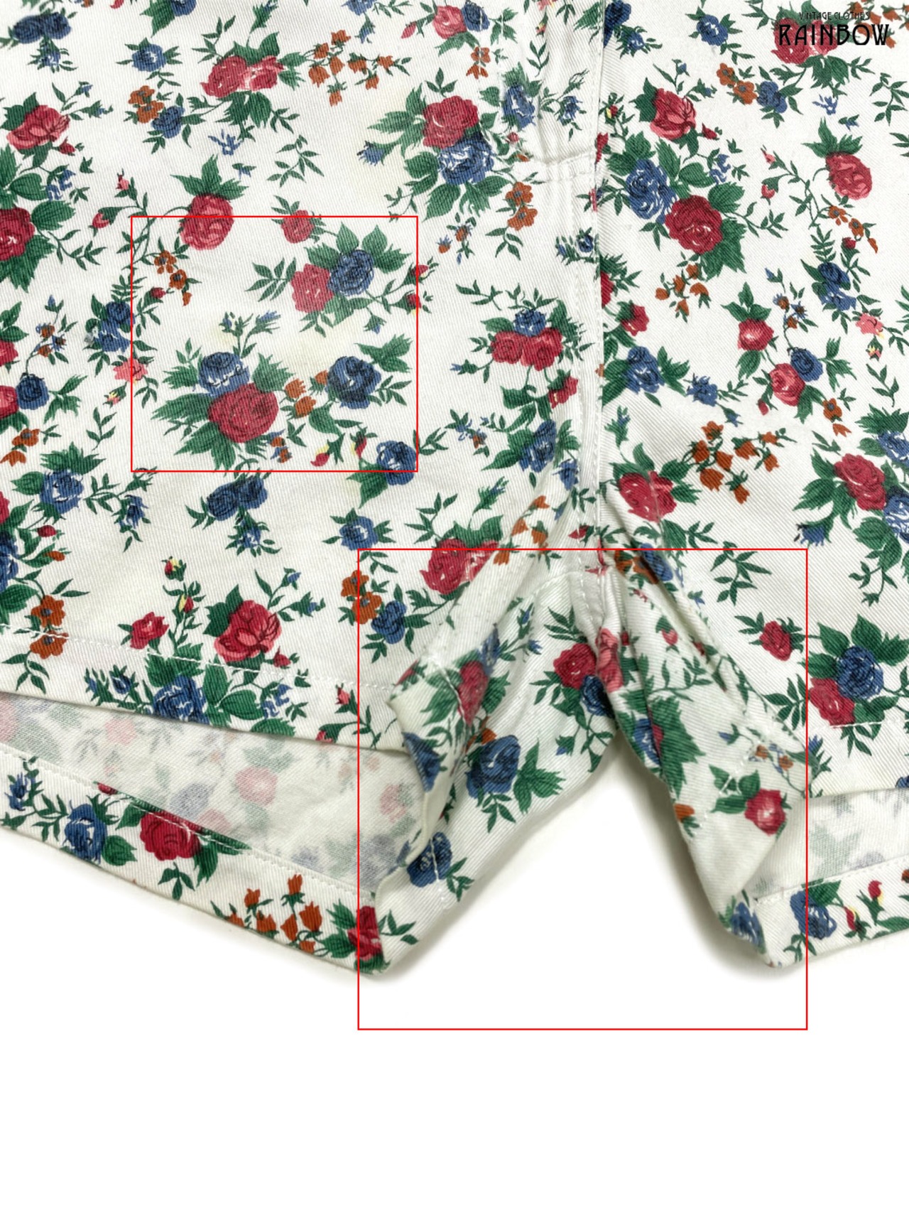 #パンツ #ミニ丈 #白 #赤 #花柄 #ガーリー #デニム #デニムショートパンツ