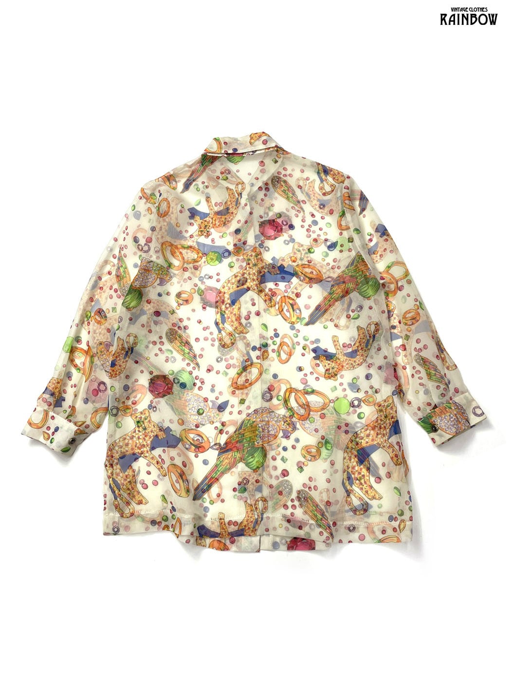 #ブラウス #シャツ #ロングスリーブ #ベージュ #総柄 #宝石 #シフォン #シフォンシャツ