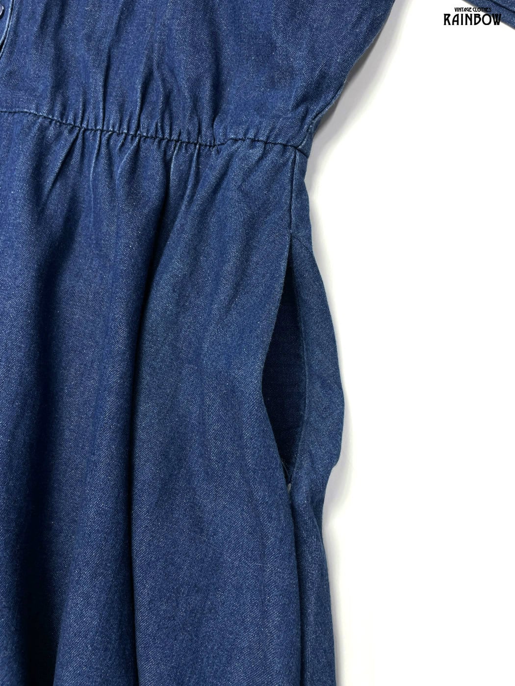 #ワンピース #ハーフスリーブ #ロング丈 #ウエスト切り替え #紺 #無地 #アメリカ製 #前開き #シンプル #デニム #デニムワンピース