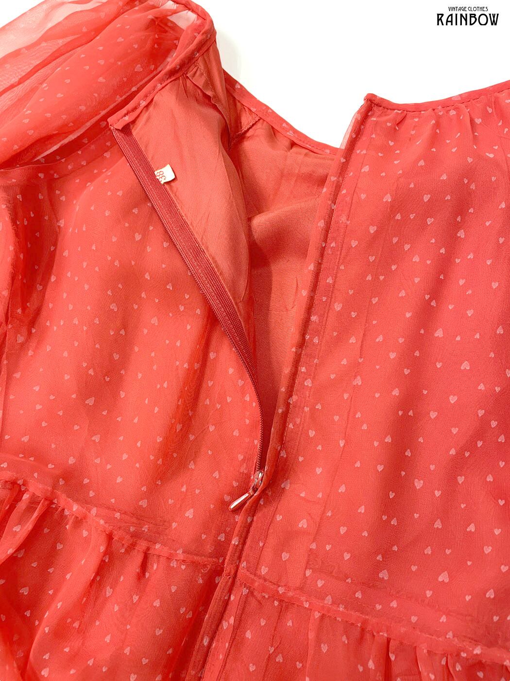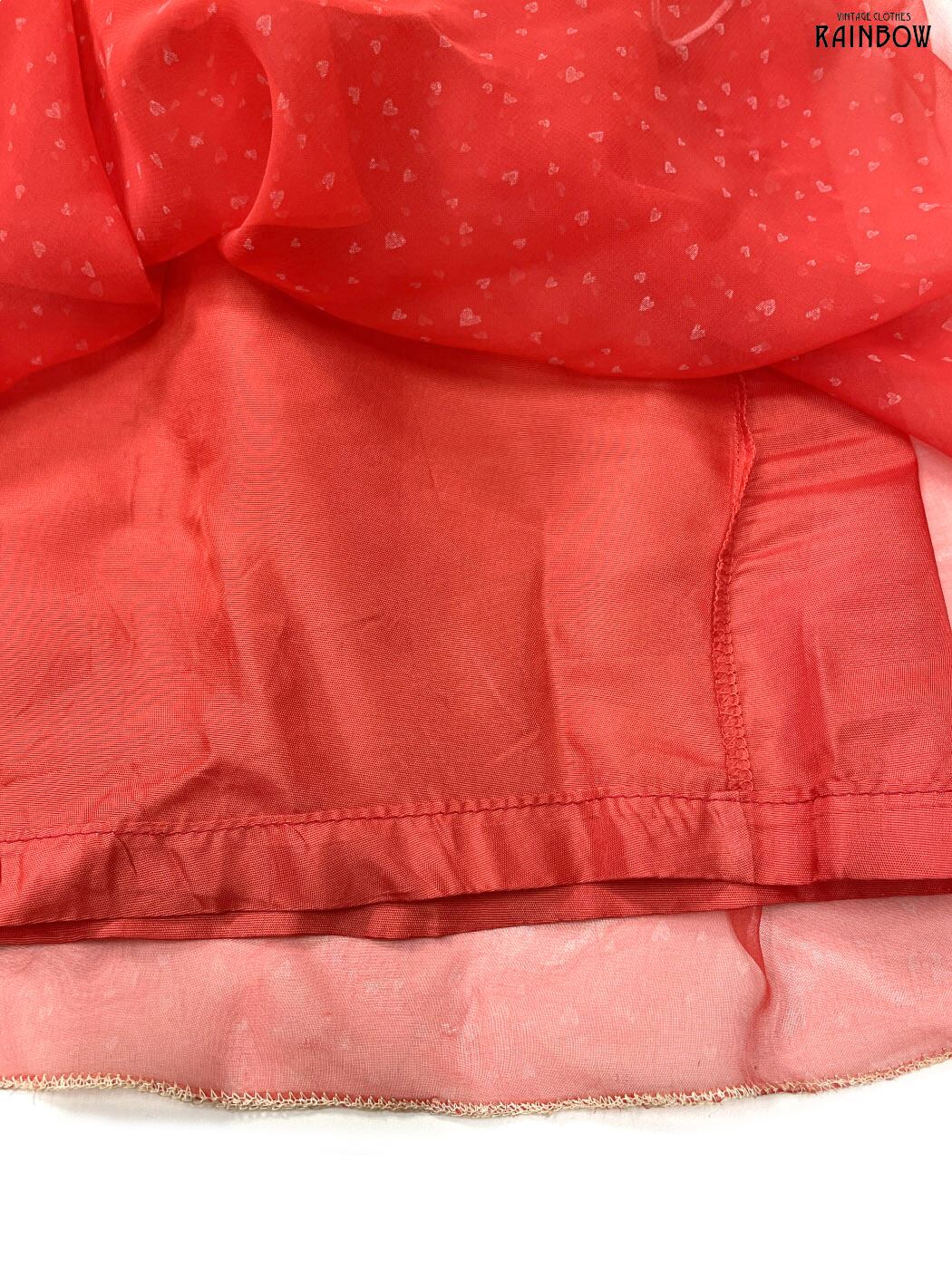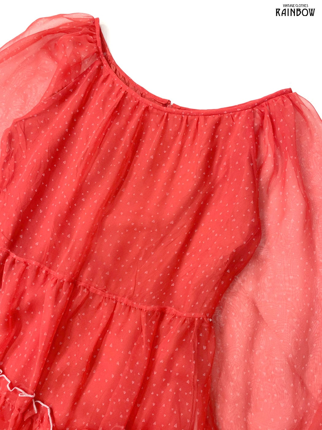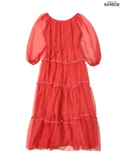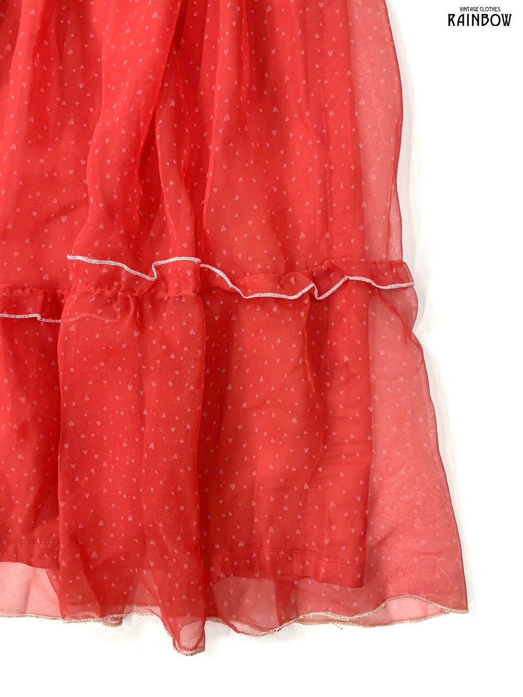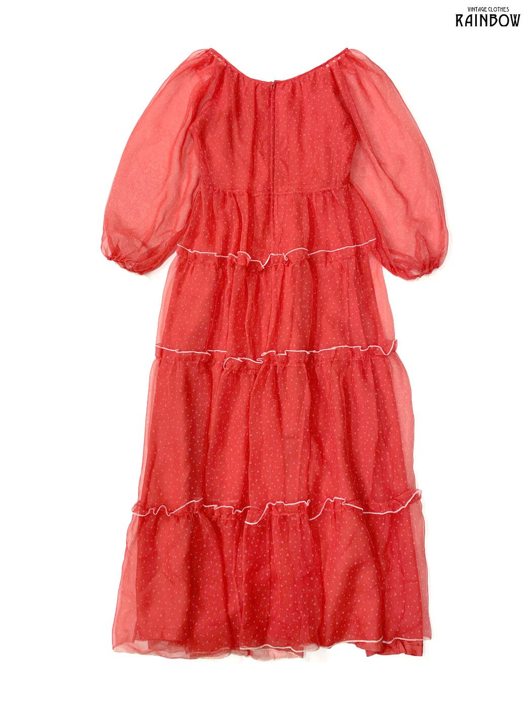#ワンピース #ロングスリーブ #ロング丈 #ティアード #赤 #総柄 #ハート柄 #フリル #シアー #ガーリー #シフォン #シフォンワンピース