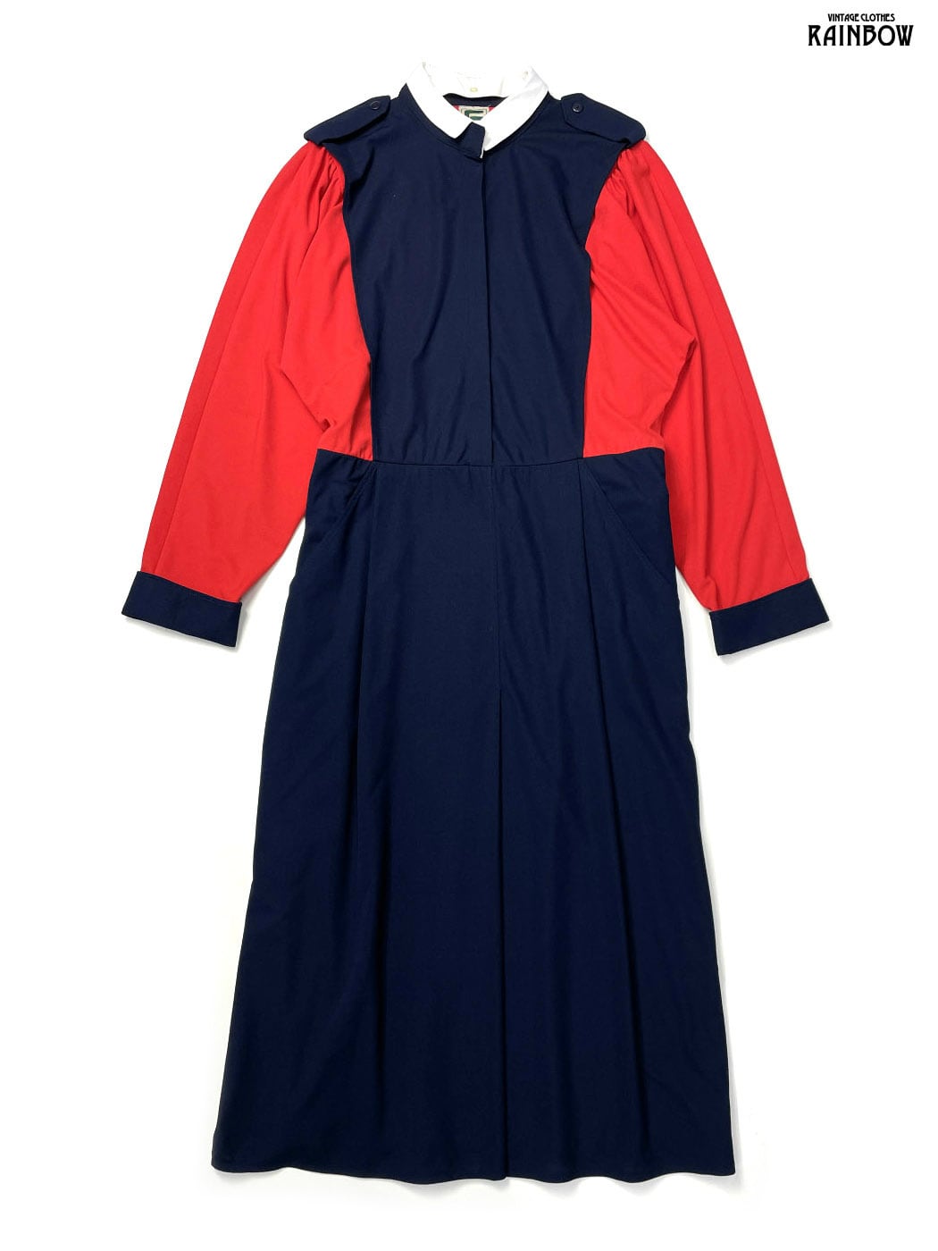 #ワンピース #ロングスリーブ #ロング丈 #ウエスト切り替え #紺 #無地 #長袖無地ワンピース