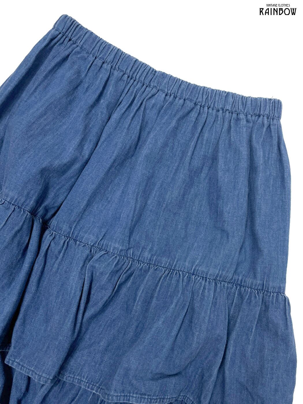 #スカート #ロング丈 #ティアード #ゴムウエスト #青 #水色 #無地 #フリル #ヴィンテージ #デニム #デニムスカート