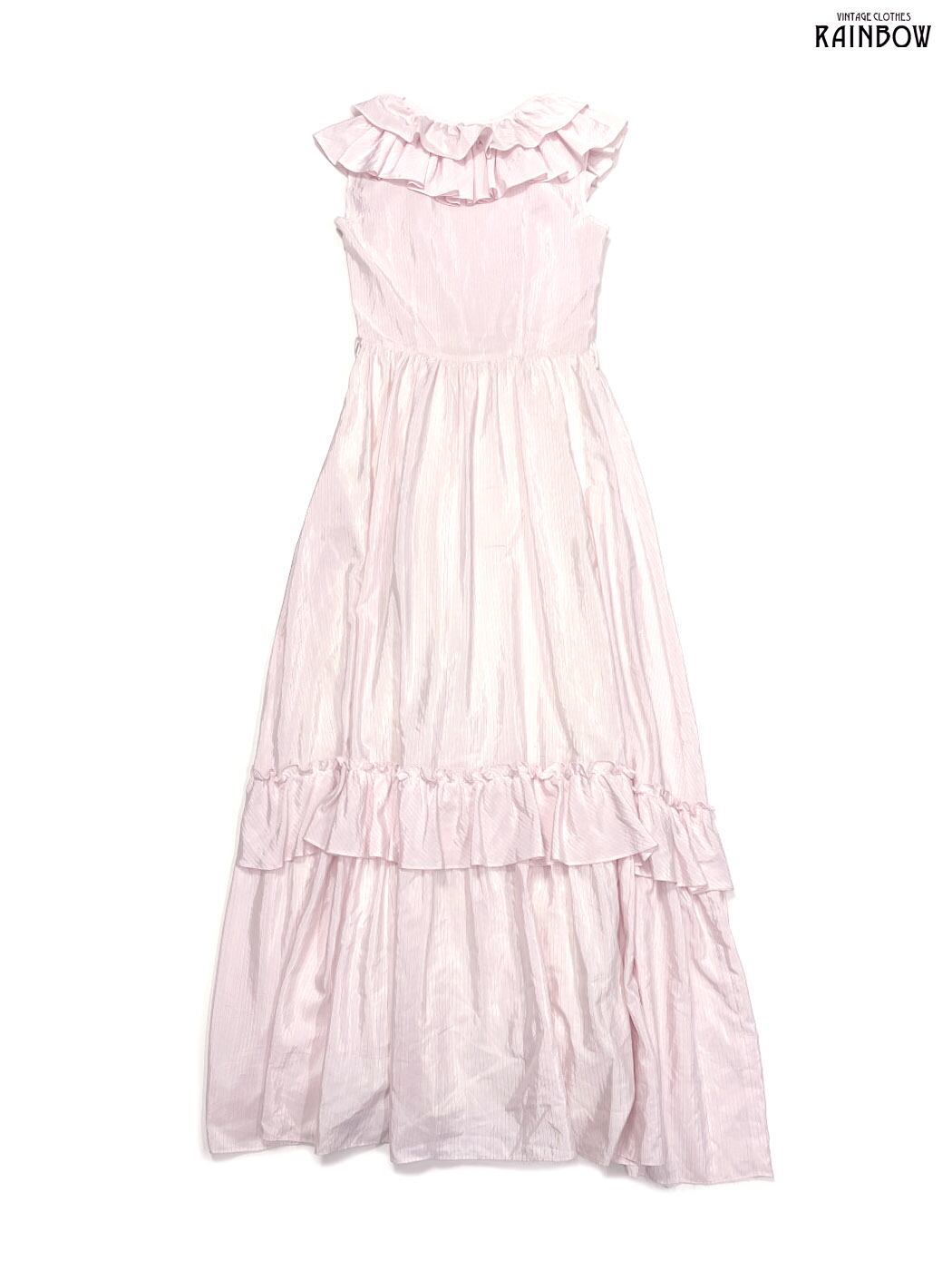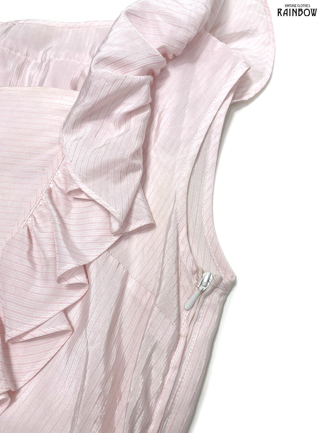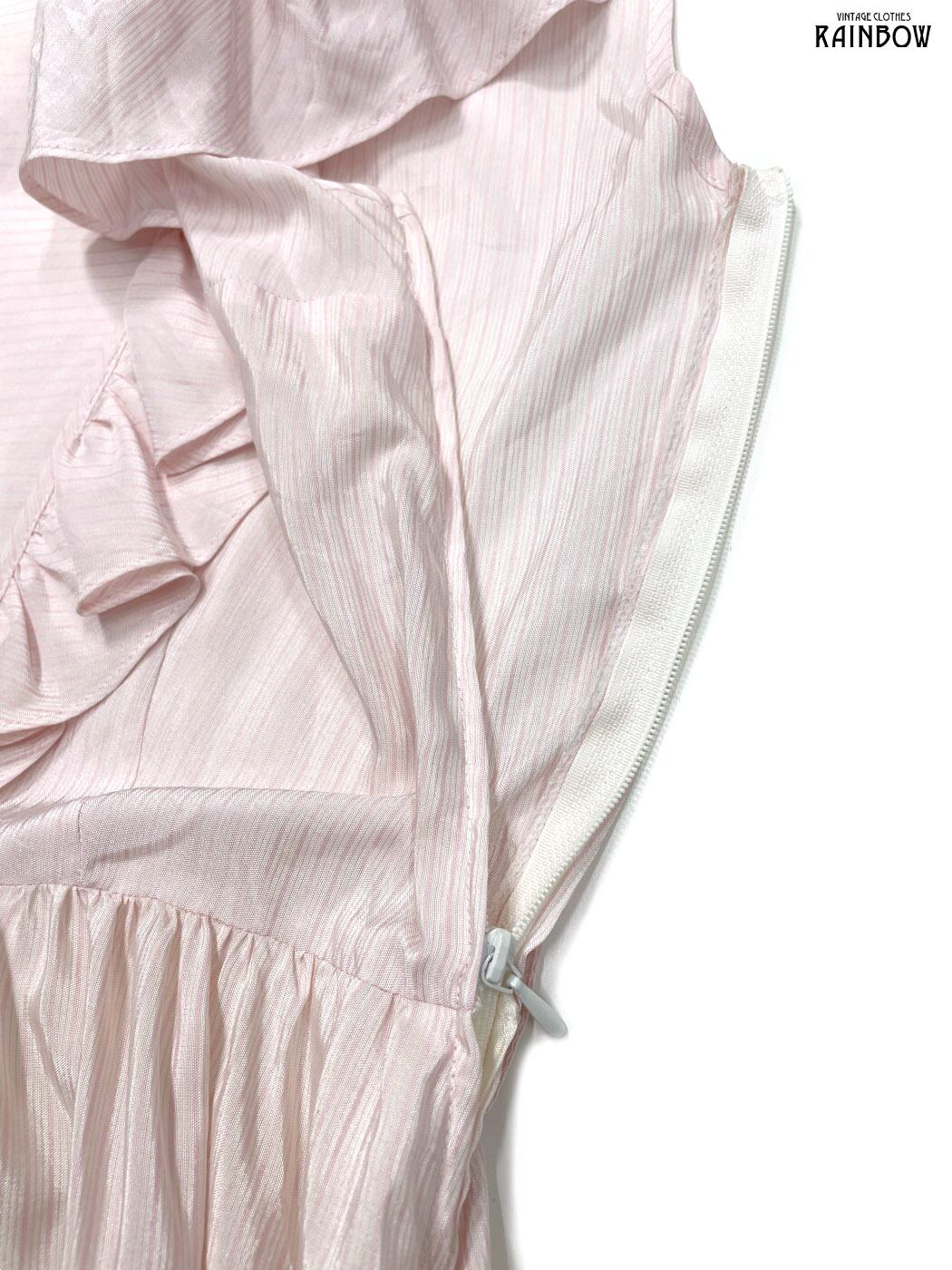 #ワンピース #ノースリーブ #ロング丈 #ティアード #ウエスト切り替え #ピンク #ストライプ柄 #フリル #ガーリー #ノースリーブストライプ柄ワンピース