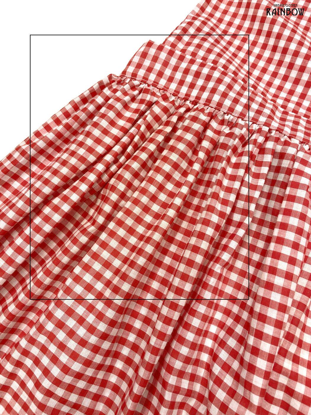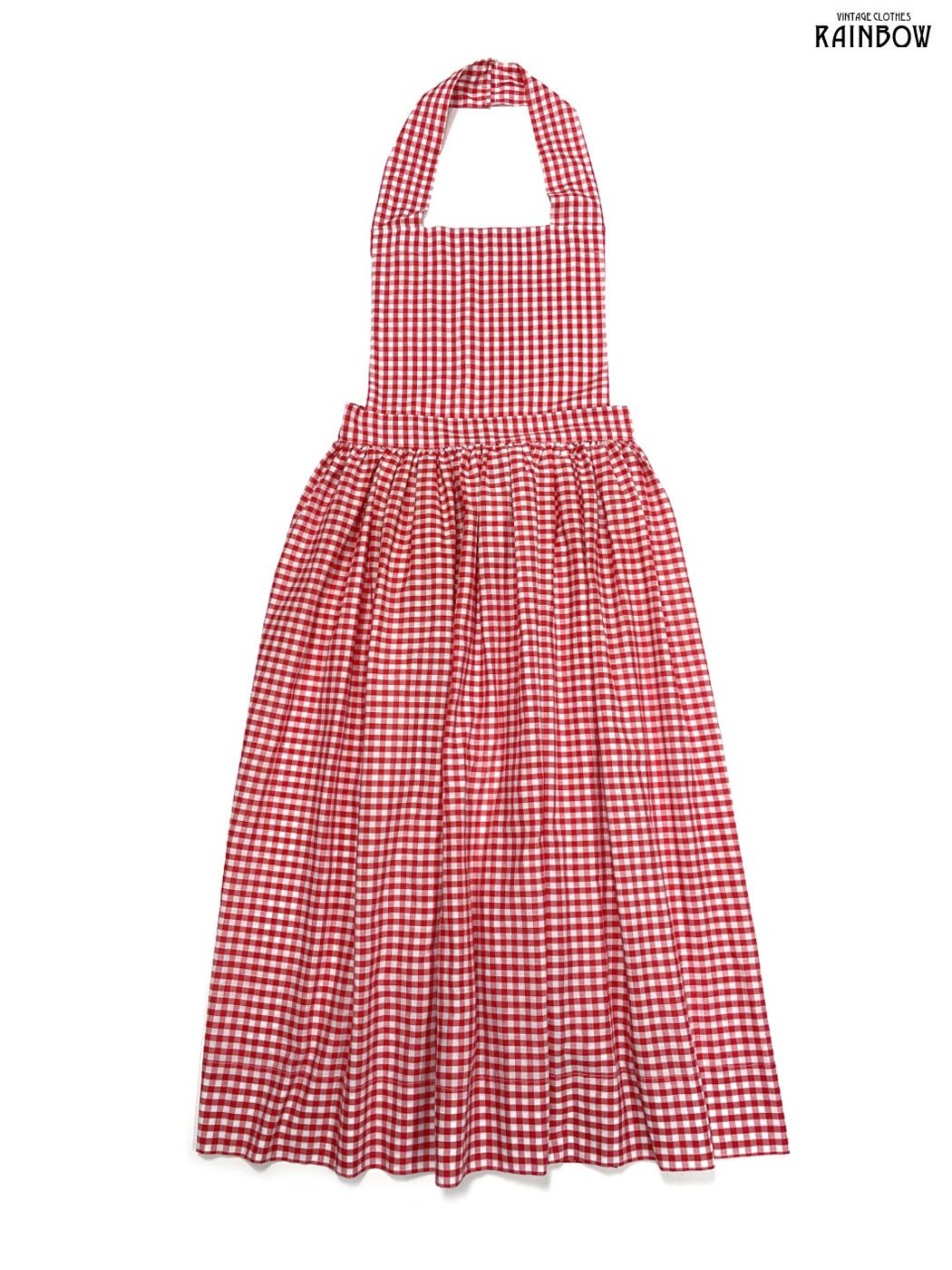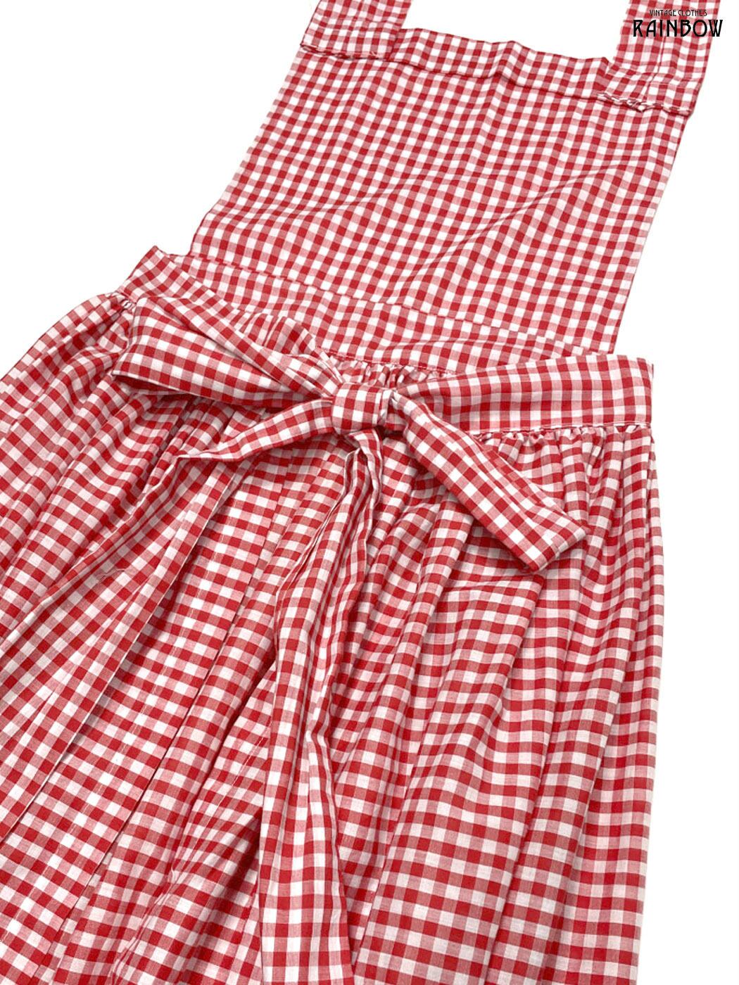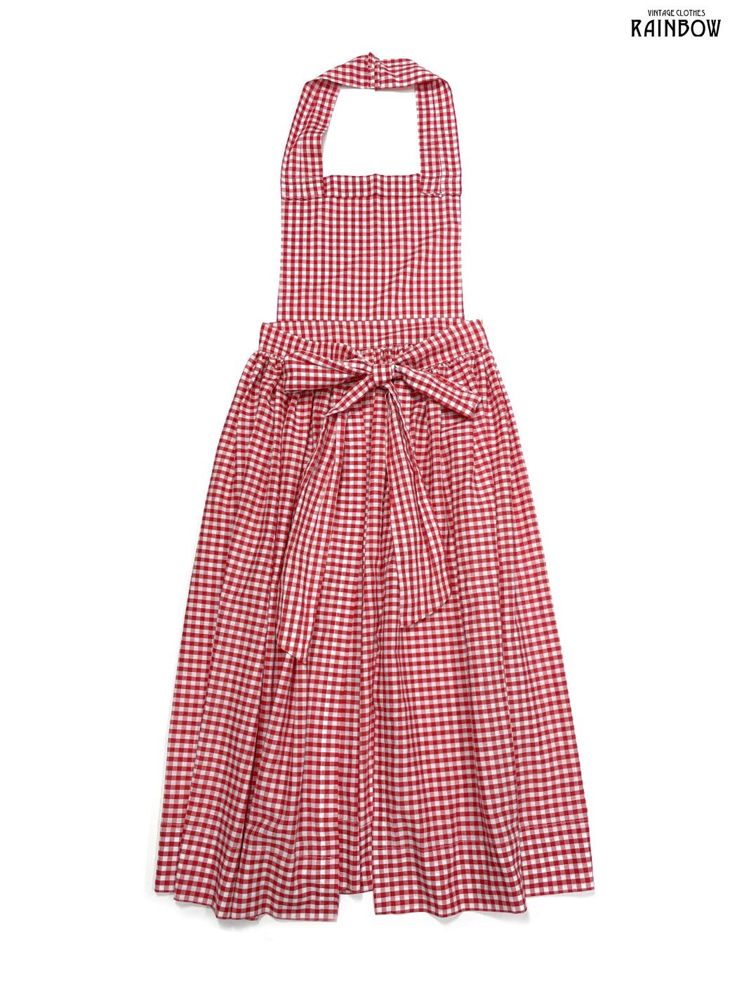 #ワンピース #ノースリーブ #ロング丈 #フレア #ウエスト切り替え #赤 #チェック柄 #ギンガムチェック #リボン #ホルターネック #ガーリー #コットン #ノースリーブチェック柄ワンピース