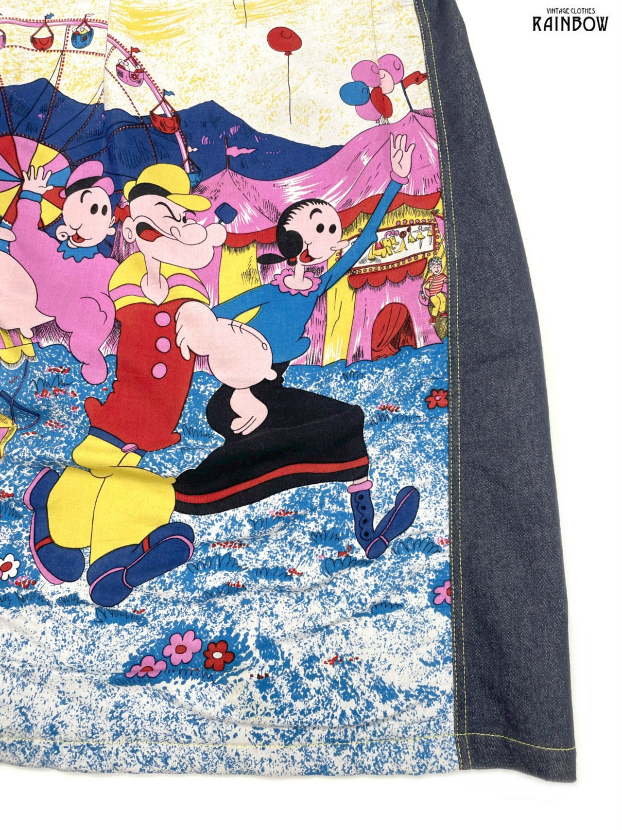 #ワンピース #ノースリーブ #ミニ丈 #ストレート #紺 #総柄 #キャラクター #ポパイ #ベアトップ #ヴィンテージ #デニム #ベアトップワンピース