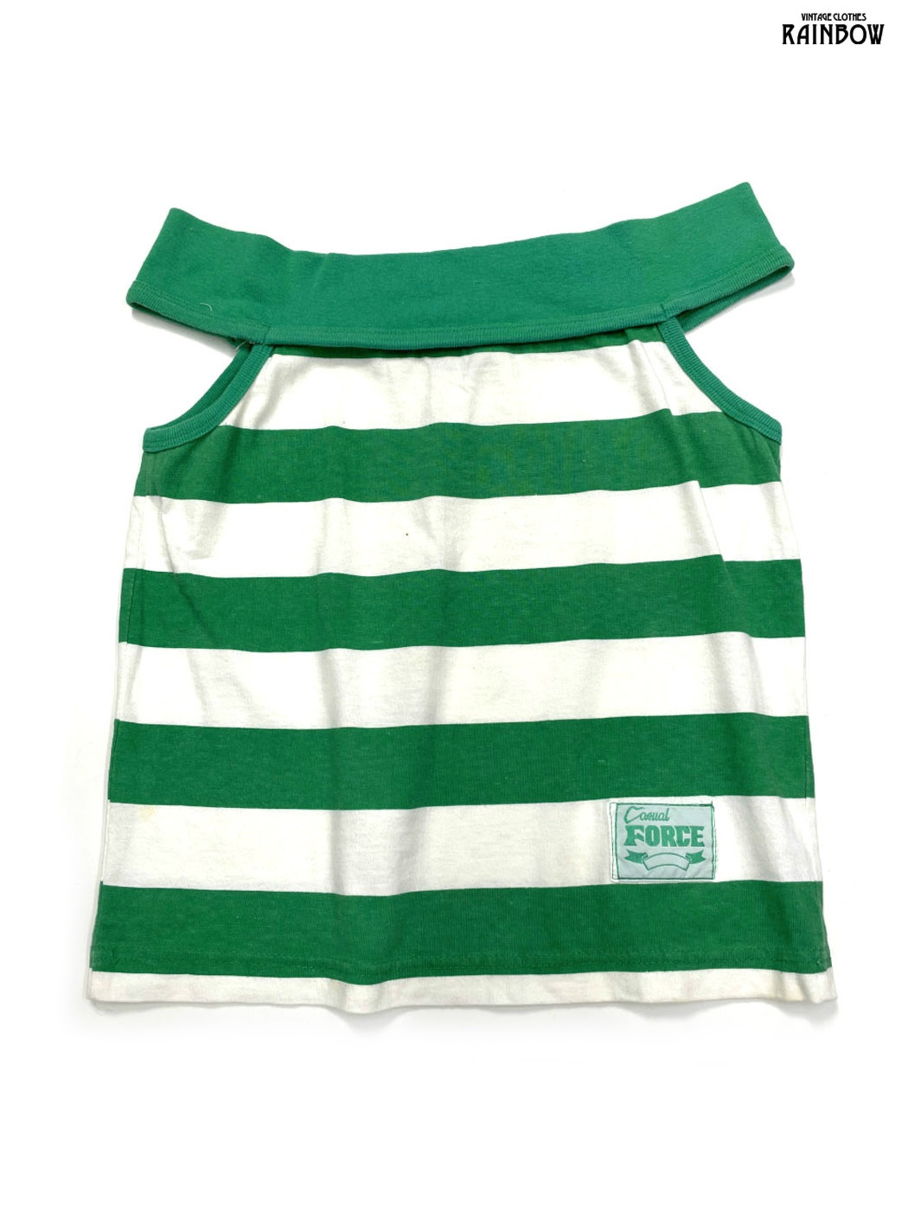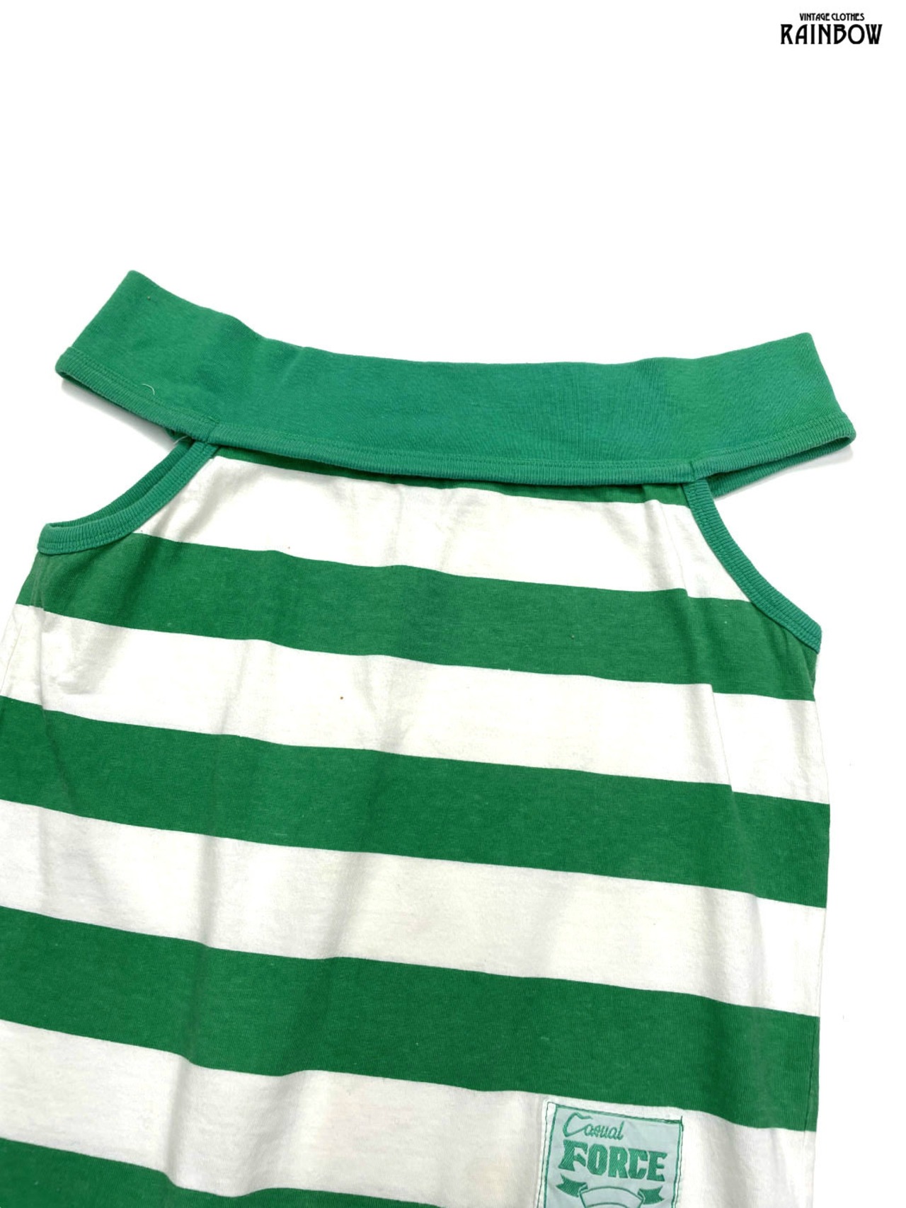 #トップス #タンクトップ #ノースリーブ #緑 #ボーダー柄 #コットン #タンクトップ