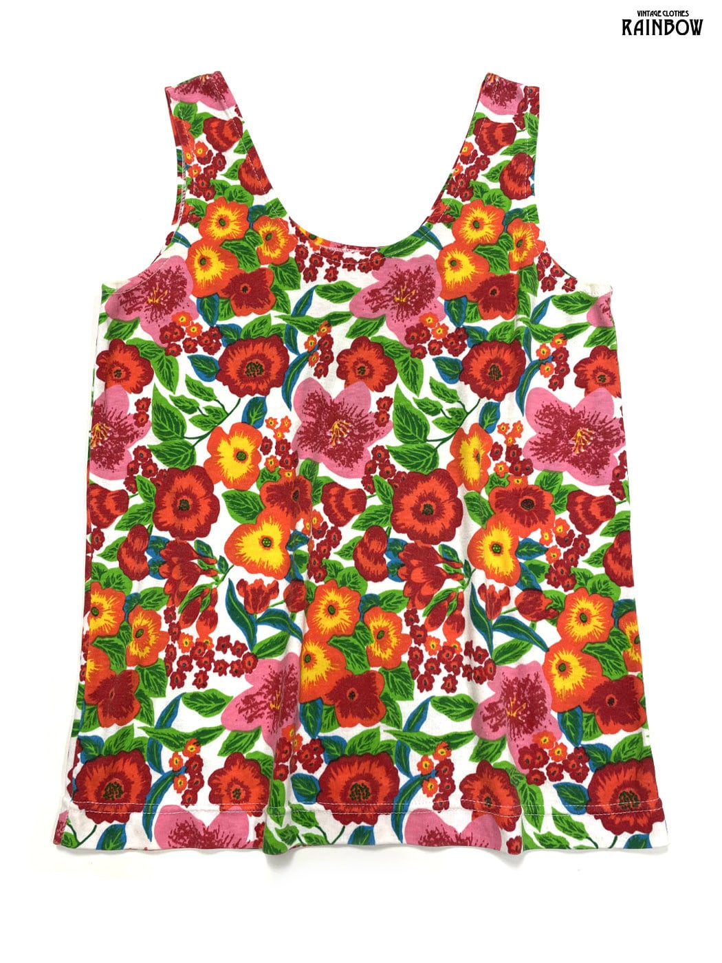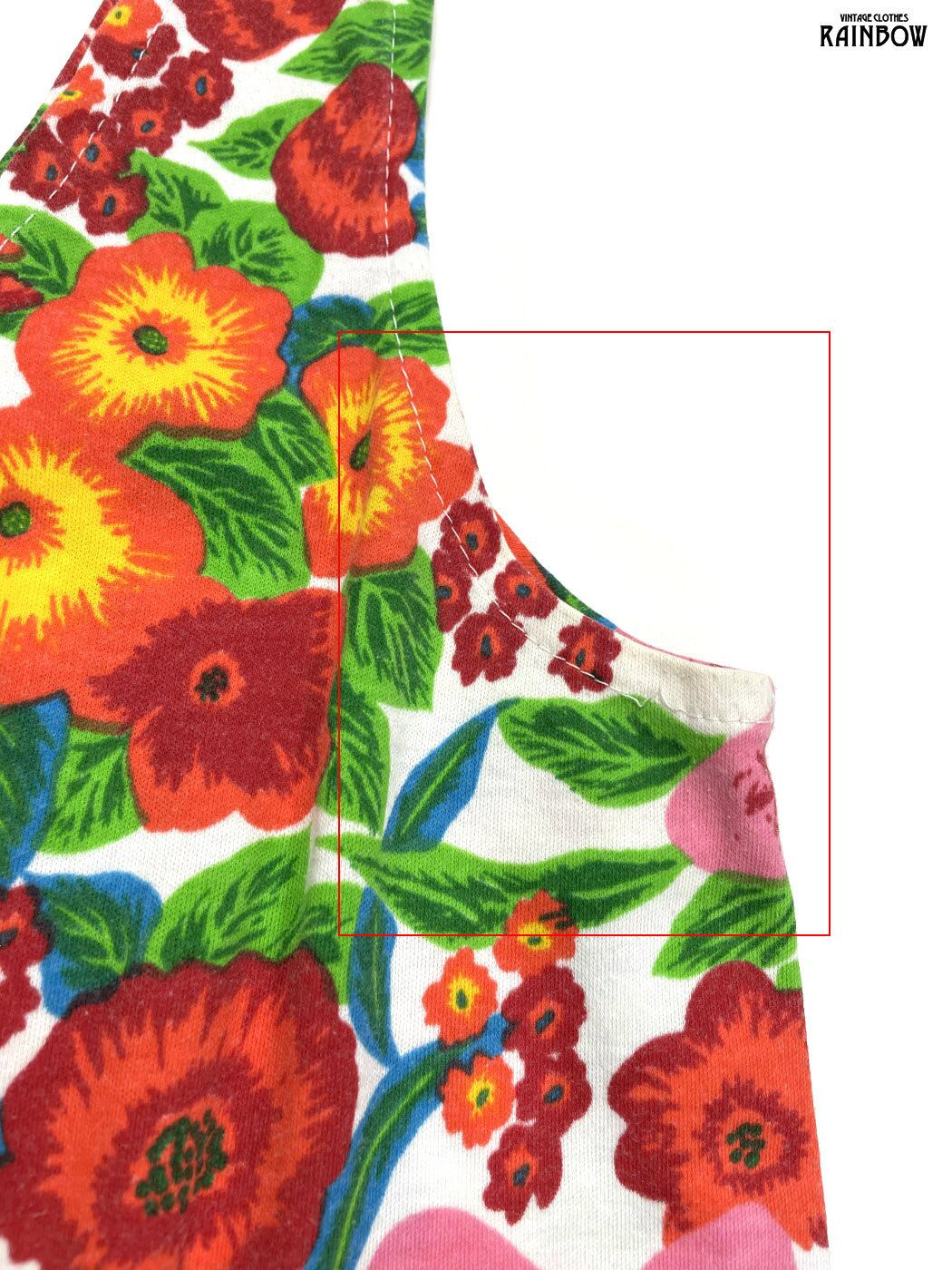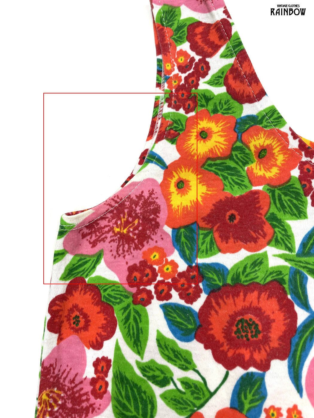 #トップス #タンクトップ #ノースリーブ #赤 #オレンジ #花柄 #カットソー地 #タンクトップ