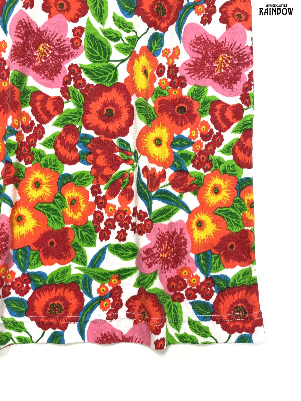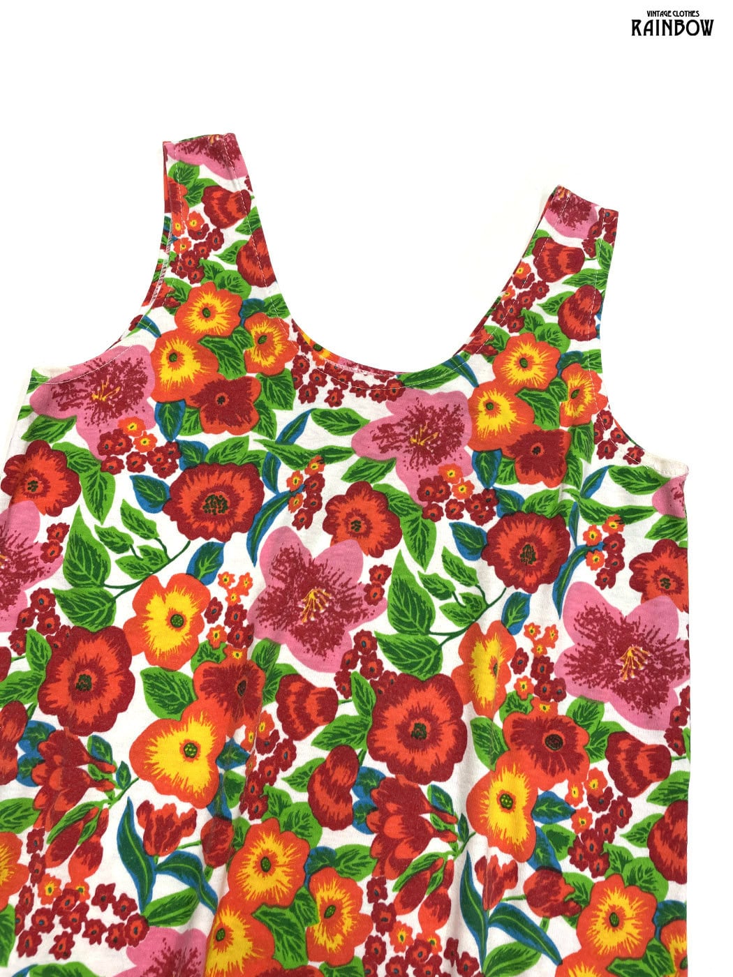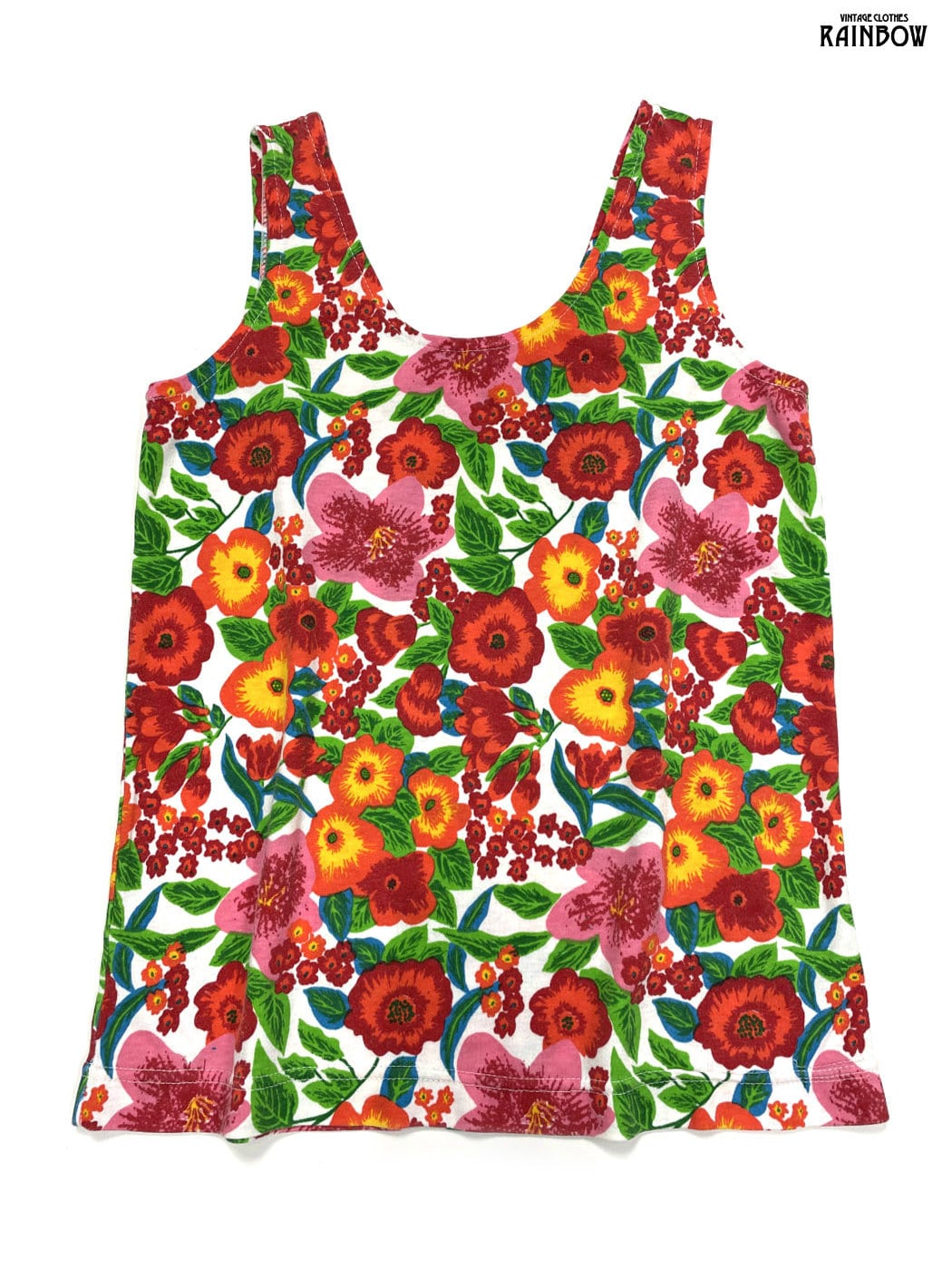 #トップス #タンクトップ #ノースリーブ #赤 #オレンジ #花柄 #カットソー地 #タンクトップ