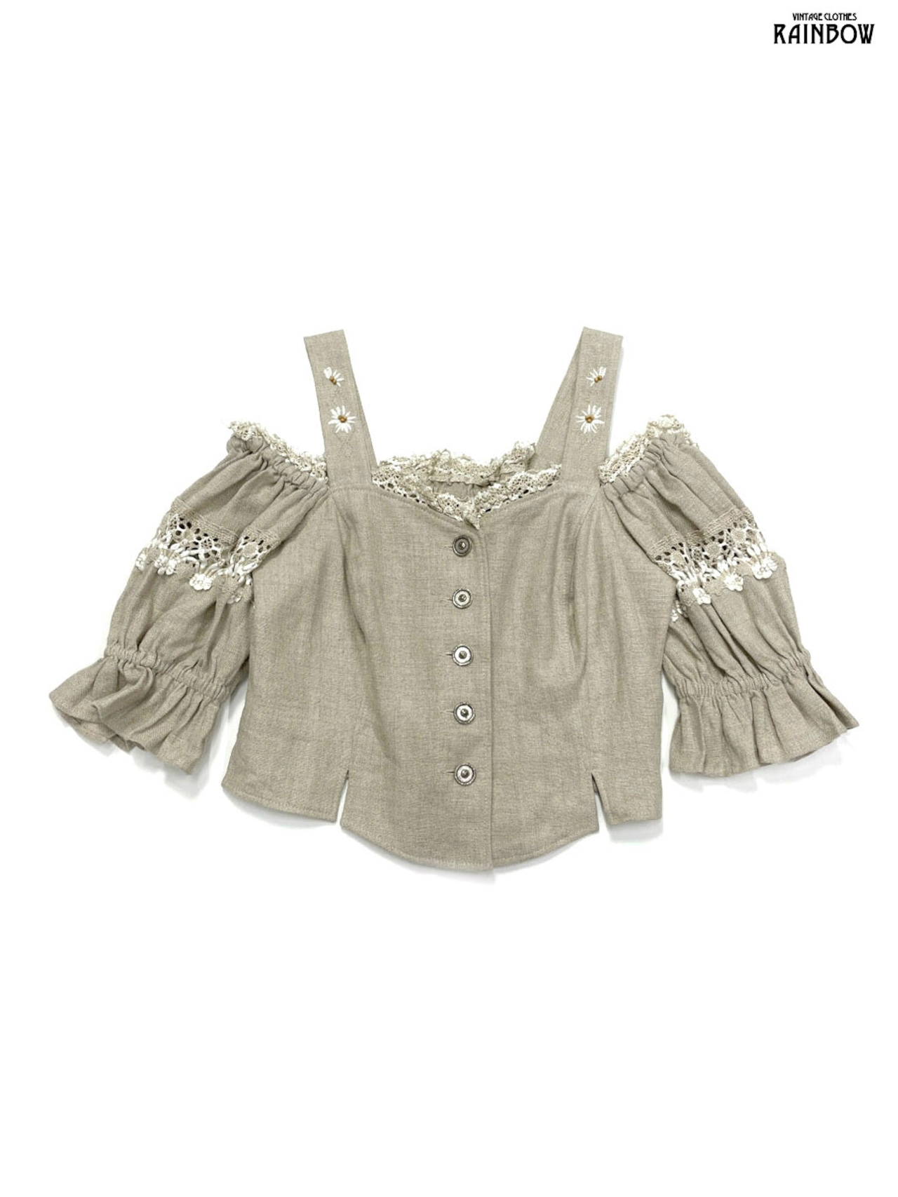 #ブラウス #bブラウス #ハーフスリーブ #ベージュ #無地 #リボン #レース #オープンショルダー #ヴィンテージ #リネン #ヴィンテージシャツ